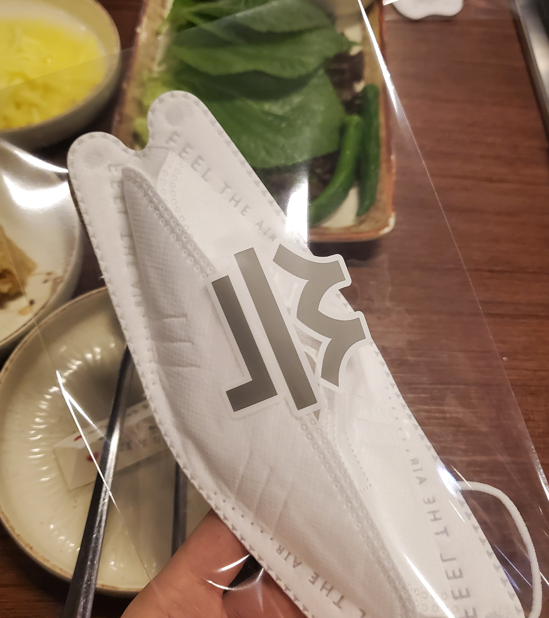 기름이 튀는 고깃집에서 이렇게 마스크 보관용 비닐을 제공해주기도 했네요.