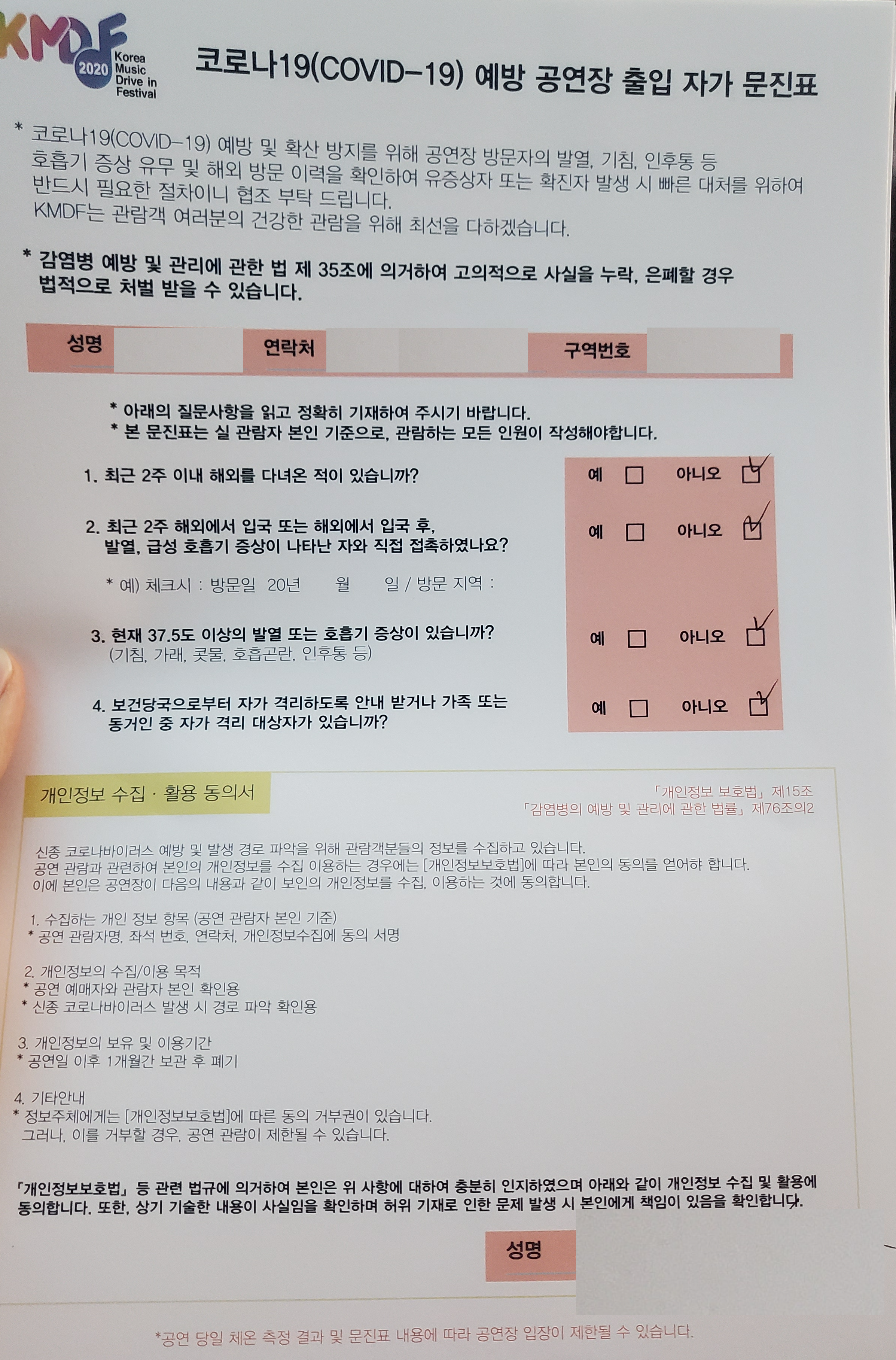 이런 문진표 저 당시엔 굉장히 많이들 제출했죠?