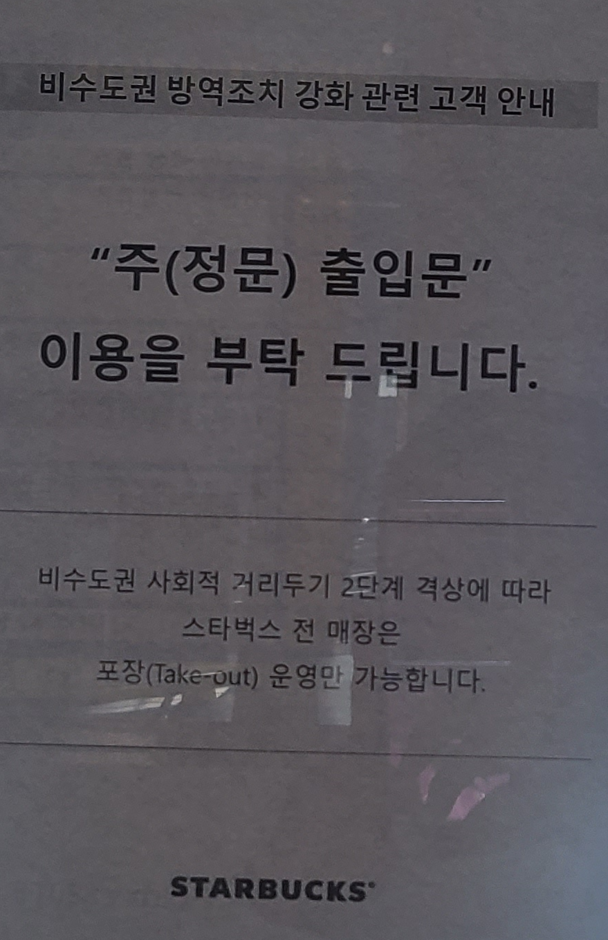 그리고 카페에 앉아서 커피를 마시지 못하고, 테이크아웃으로만 커피를 먹을 수 있는 시기였습니다.