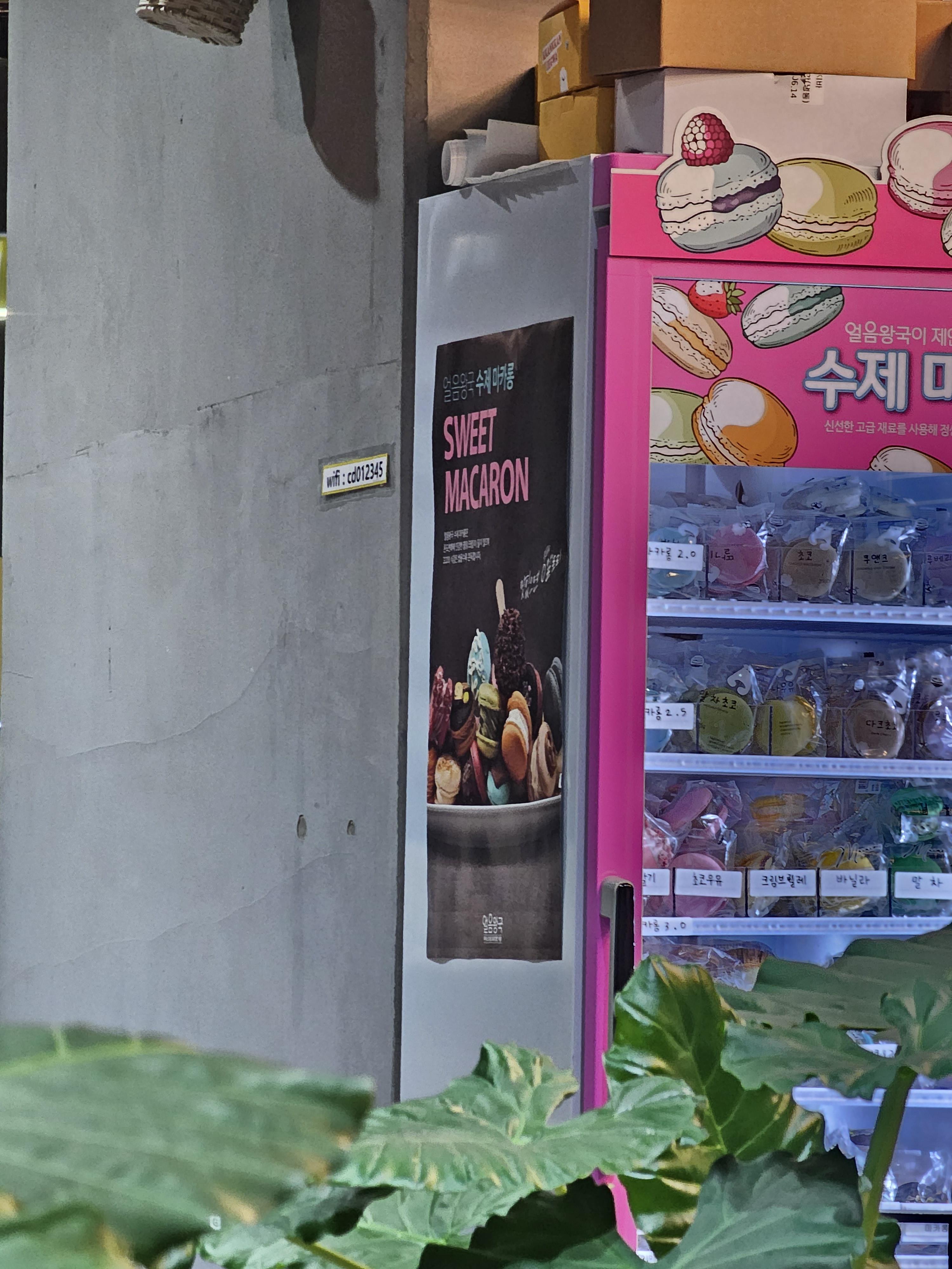 오른쪽 마카롱 이름들 중 흰색 네임택을 사용한 글씨들은 상당히 선명하고, 비닐에 적힌 글씨는 흐릿합니다.