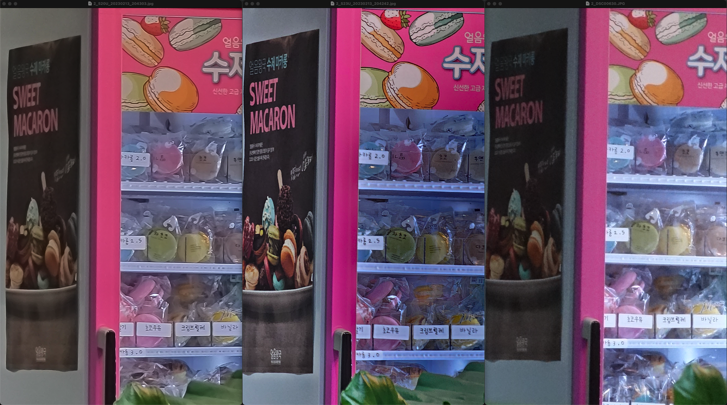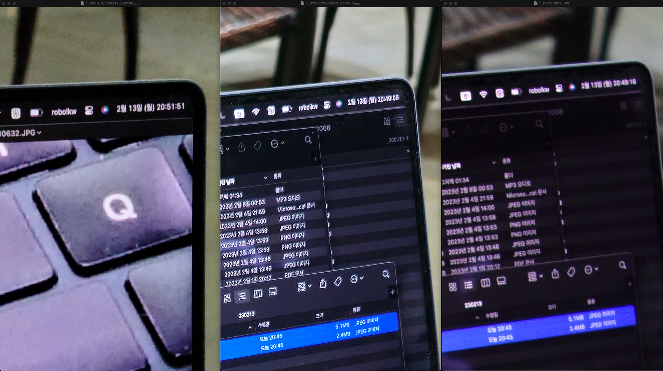 아래 사진을 보면 아시겠지만, S23U와 RX100은 거의 비슷하게 찍었고, S20U는 조금 나중에 찍었습니다.