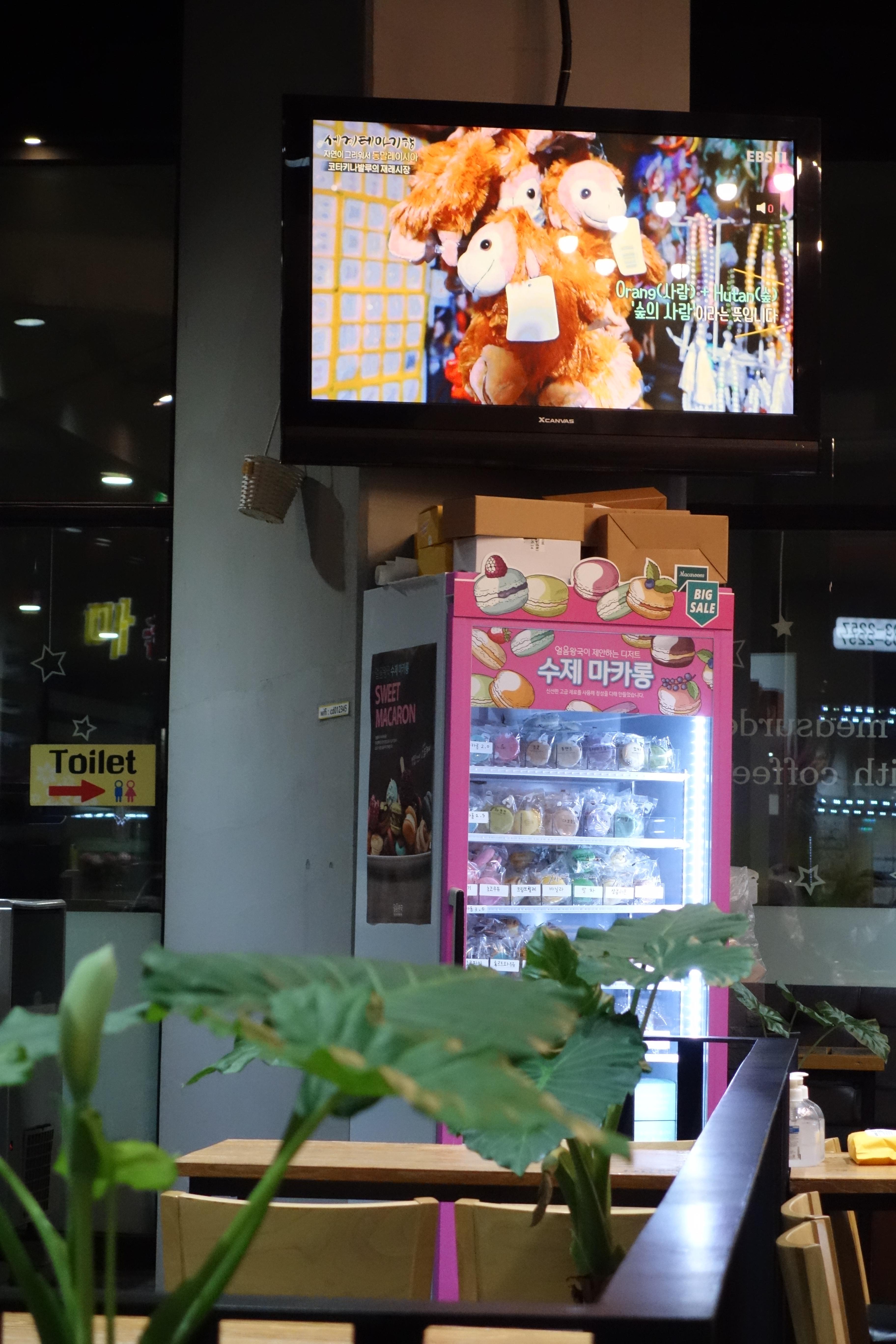 S20U는 4배 줌에서 크롭한 만큼, 왼쪽에 포스터의 마카롱들이 많이 뭉개진 것이 보이구요
