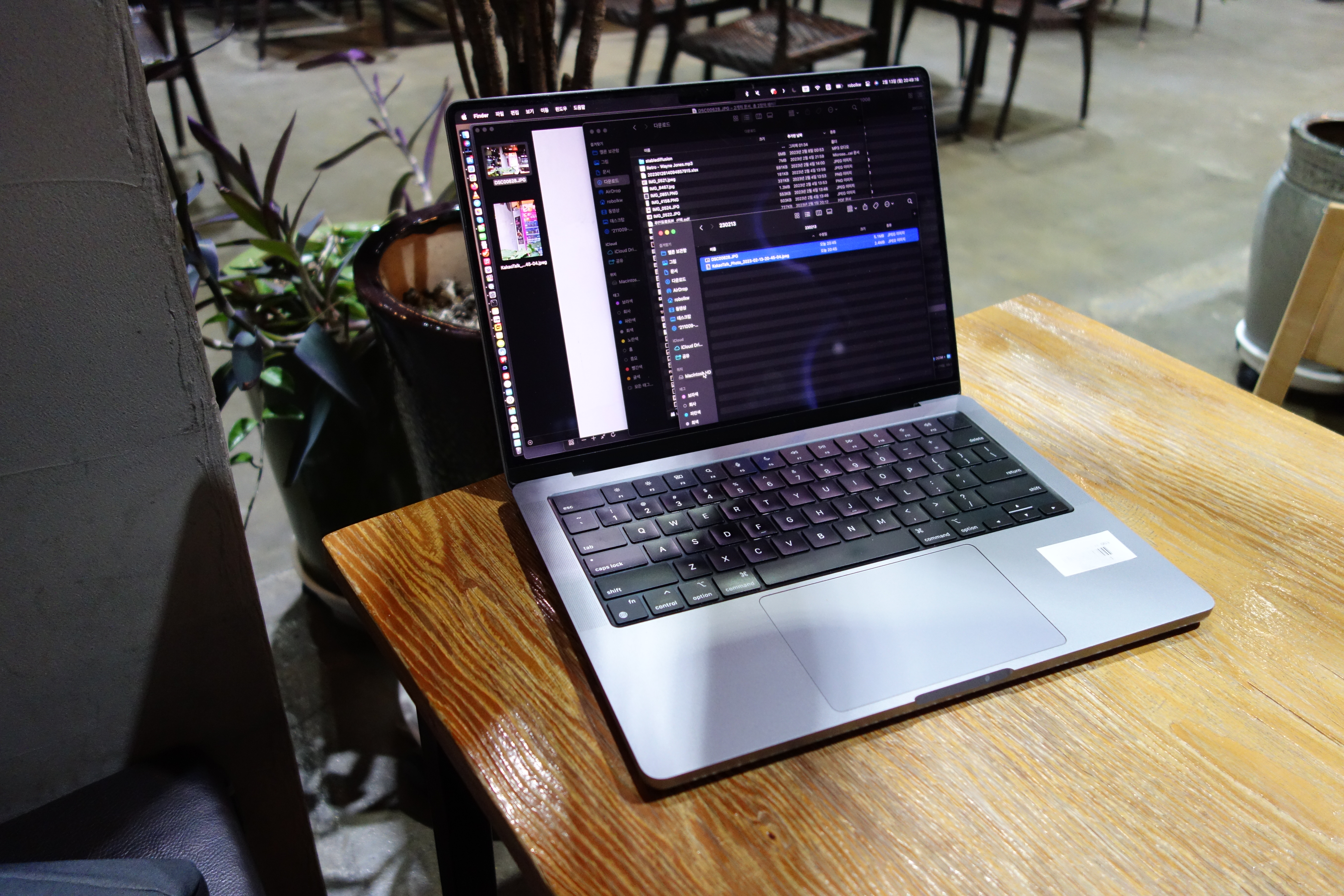 그래서 테이블에 놓인 맥북의 각도가 조금 달라요.