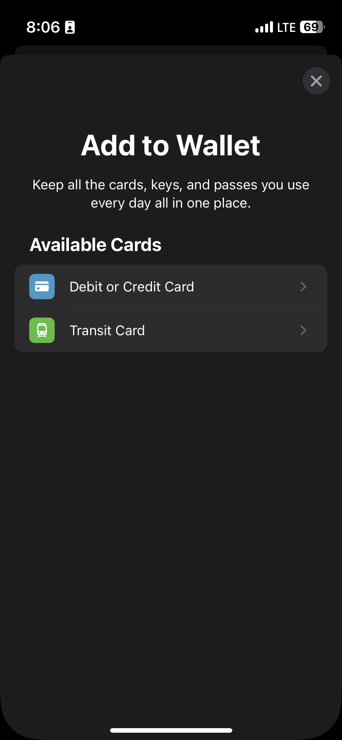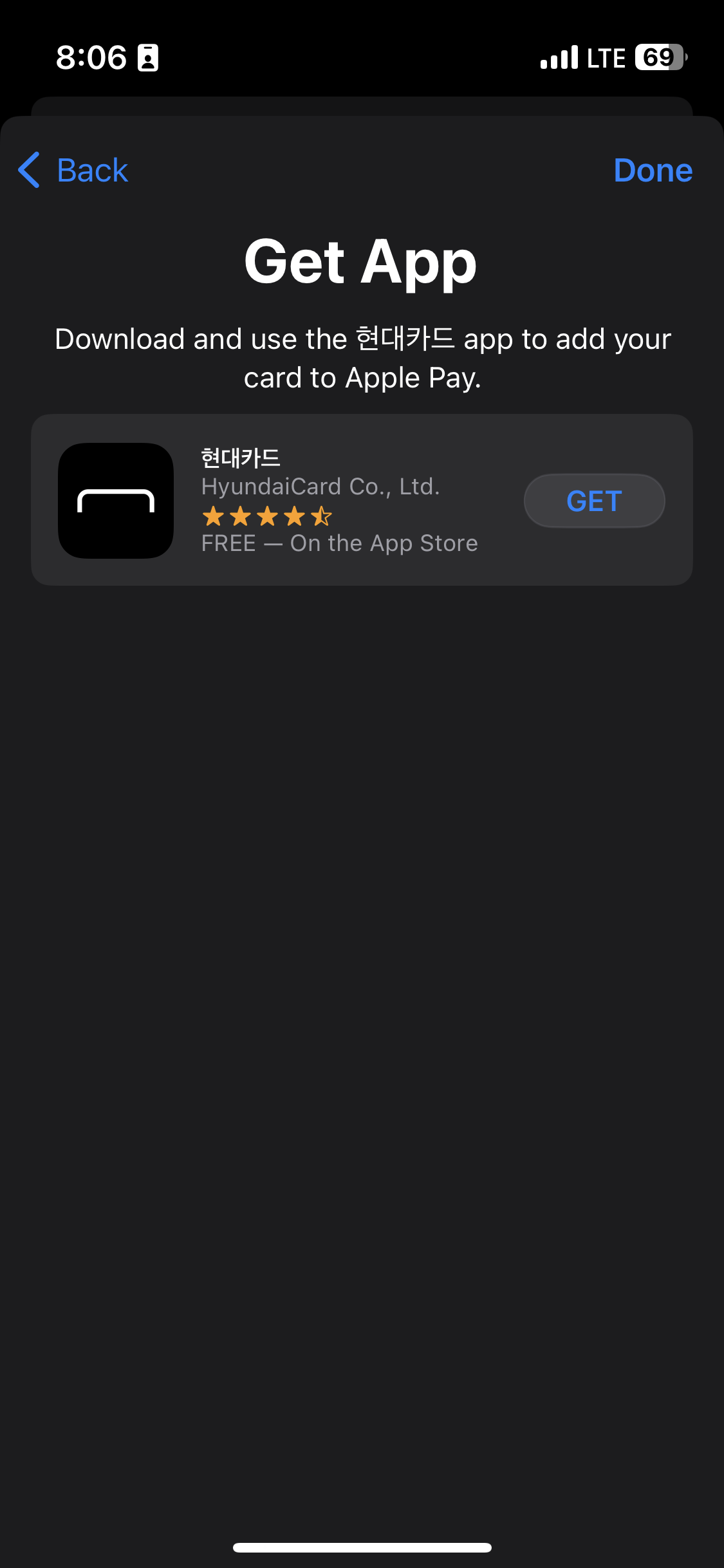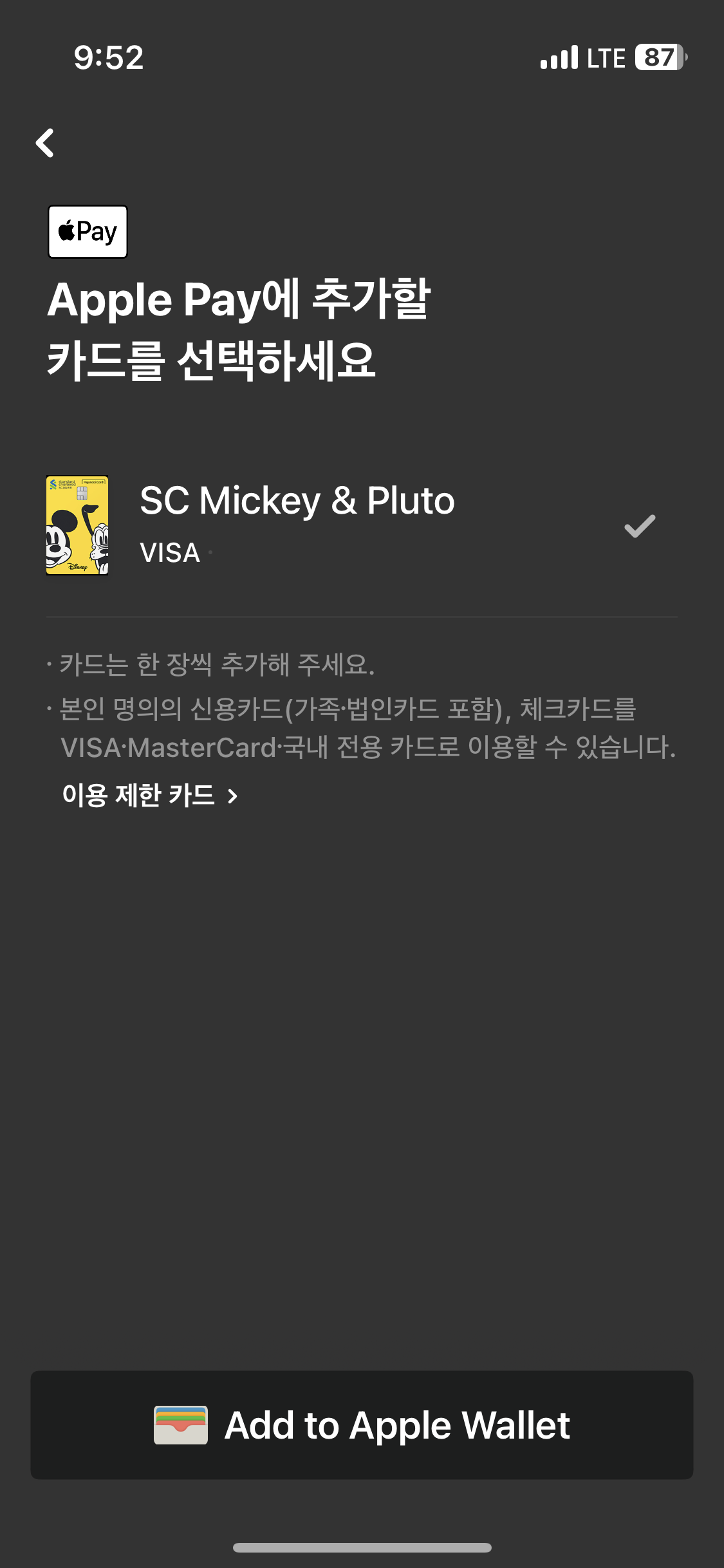 (발급받은 카드가 후불교통 기능이 있더라도, 애플페이 자체에서 안 됨)