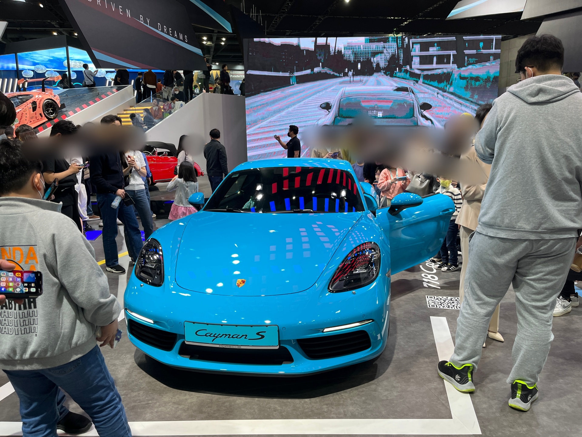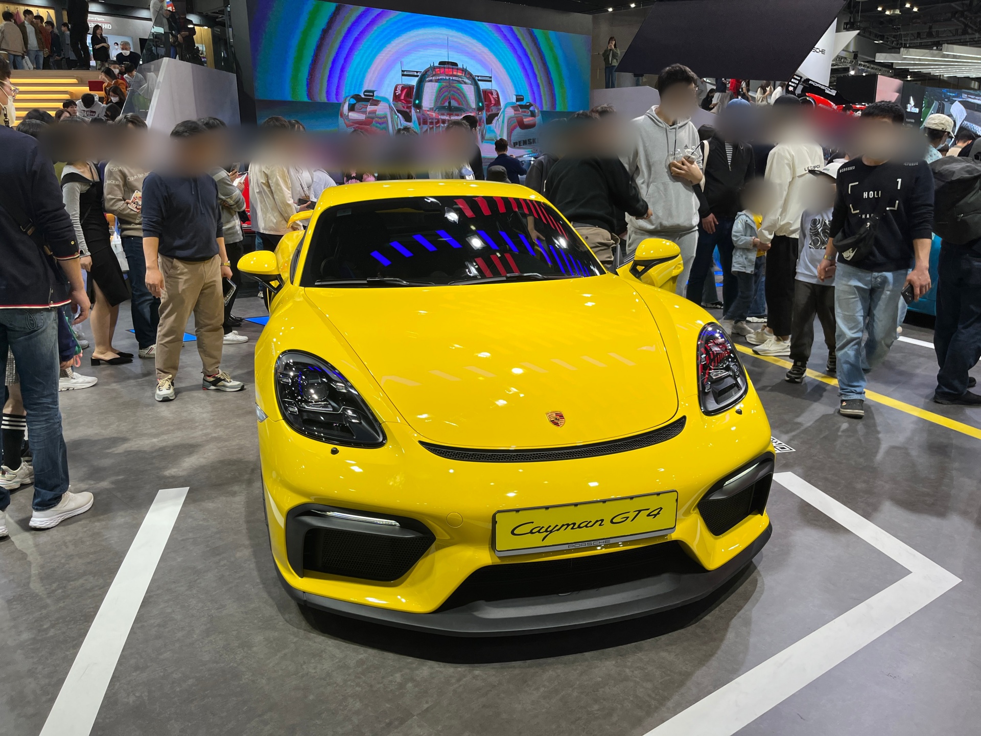 Cayman GT4 - Cayman S - 911 Carrera 4S - Macan GTS로 이어지는 알록달록 전면 부스.