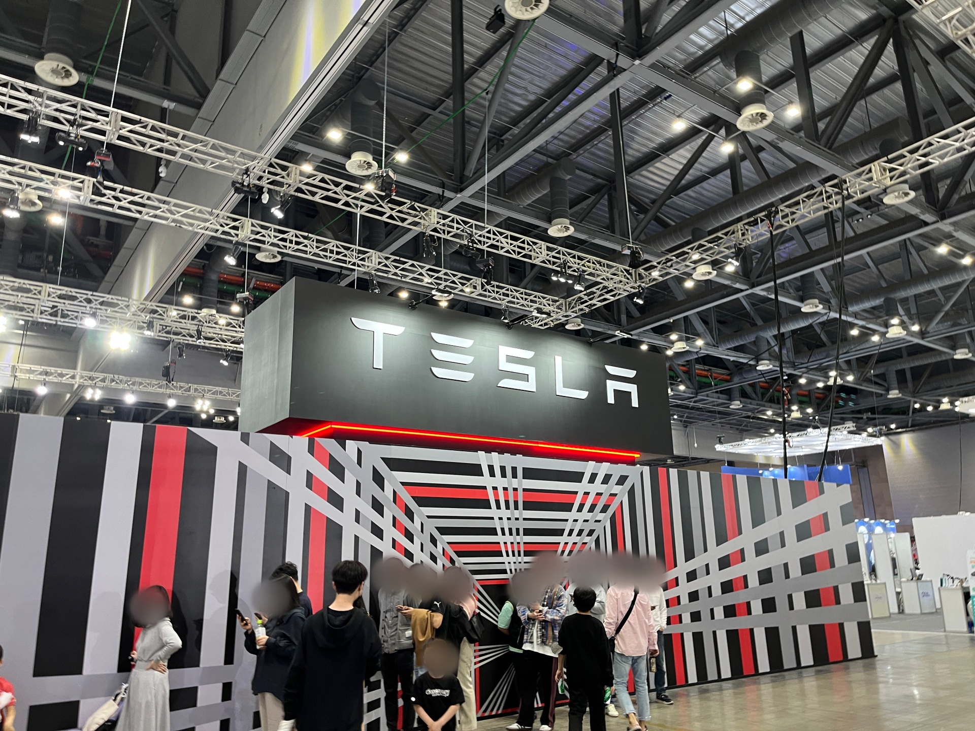 테슬라 부스는 부스 내 입장 인원을 제한해 두었습니다.