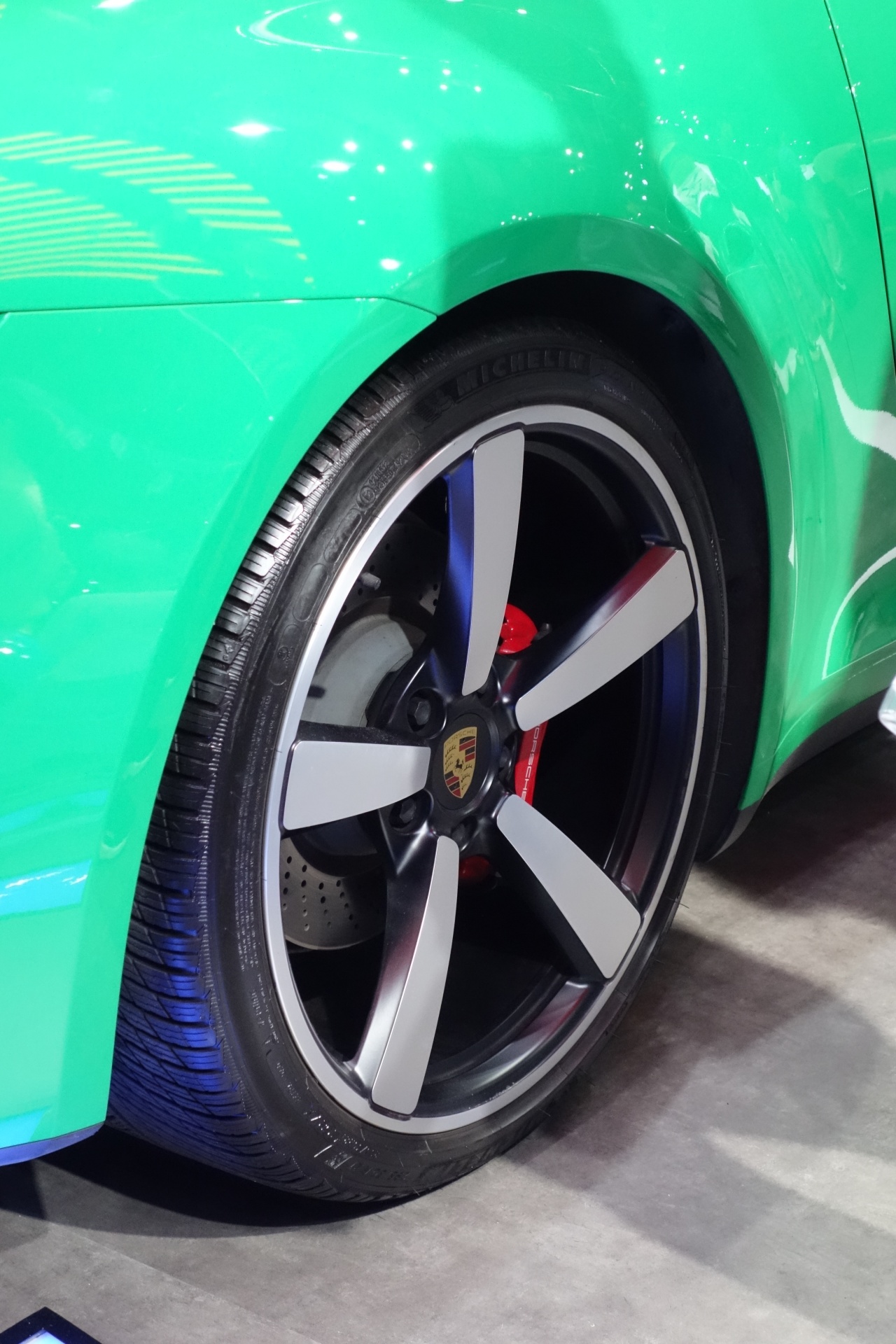 포르쉐 글씨 써있는 빨간색 브레이크 캘리퍼도 보입니다.