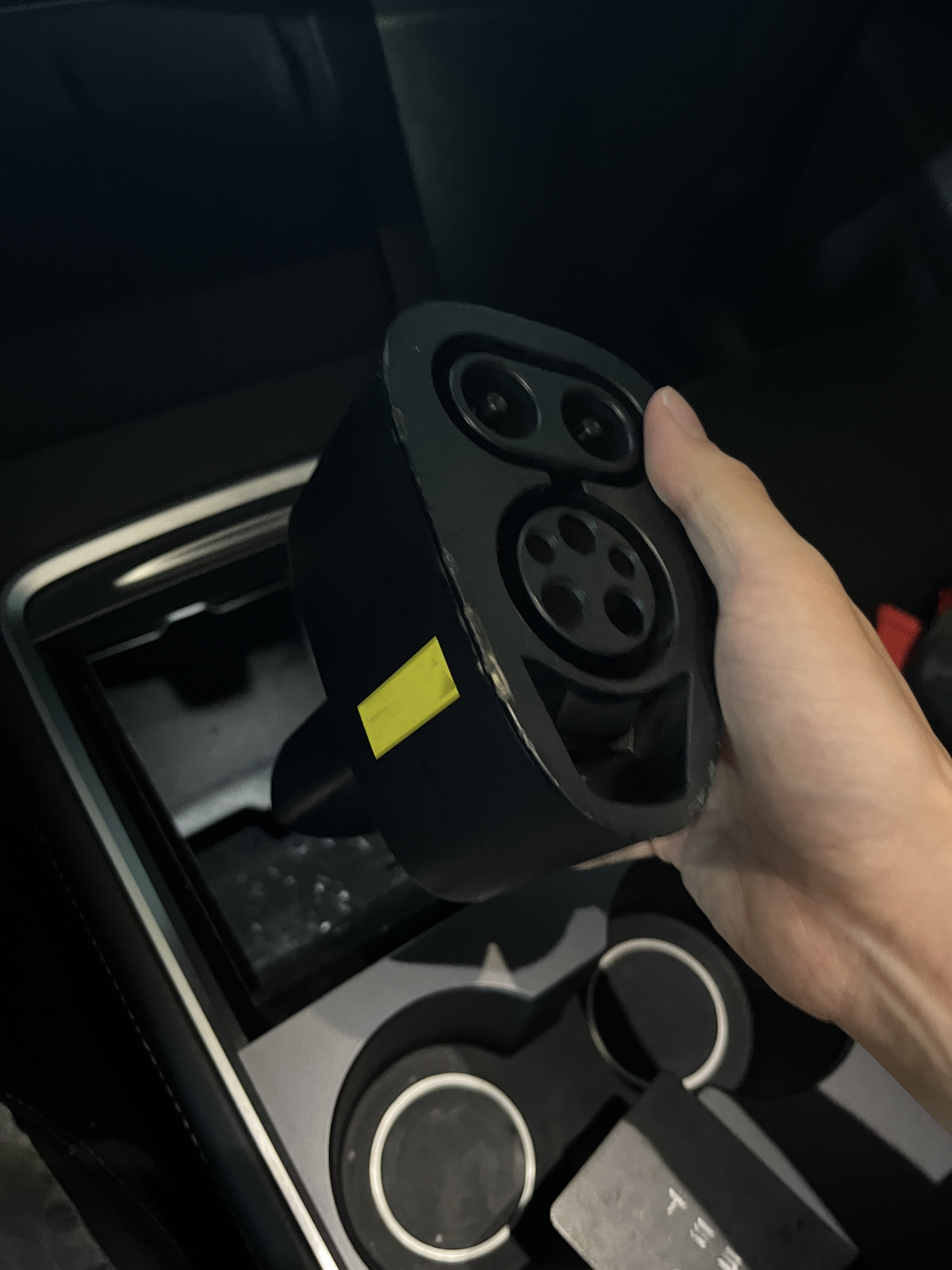 가운데에 있는 이 어댑터가 테슬라 충전 규격을 DC콤보 규격으로 바꿔주는 어댑터군요.