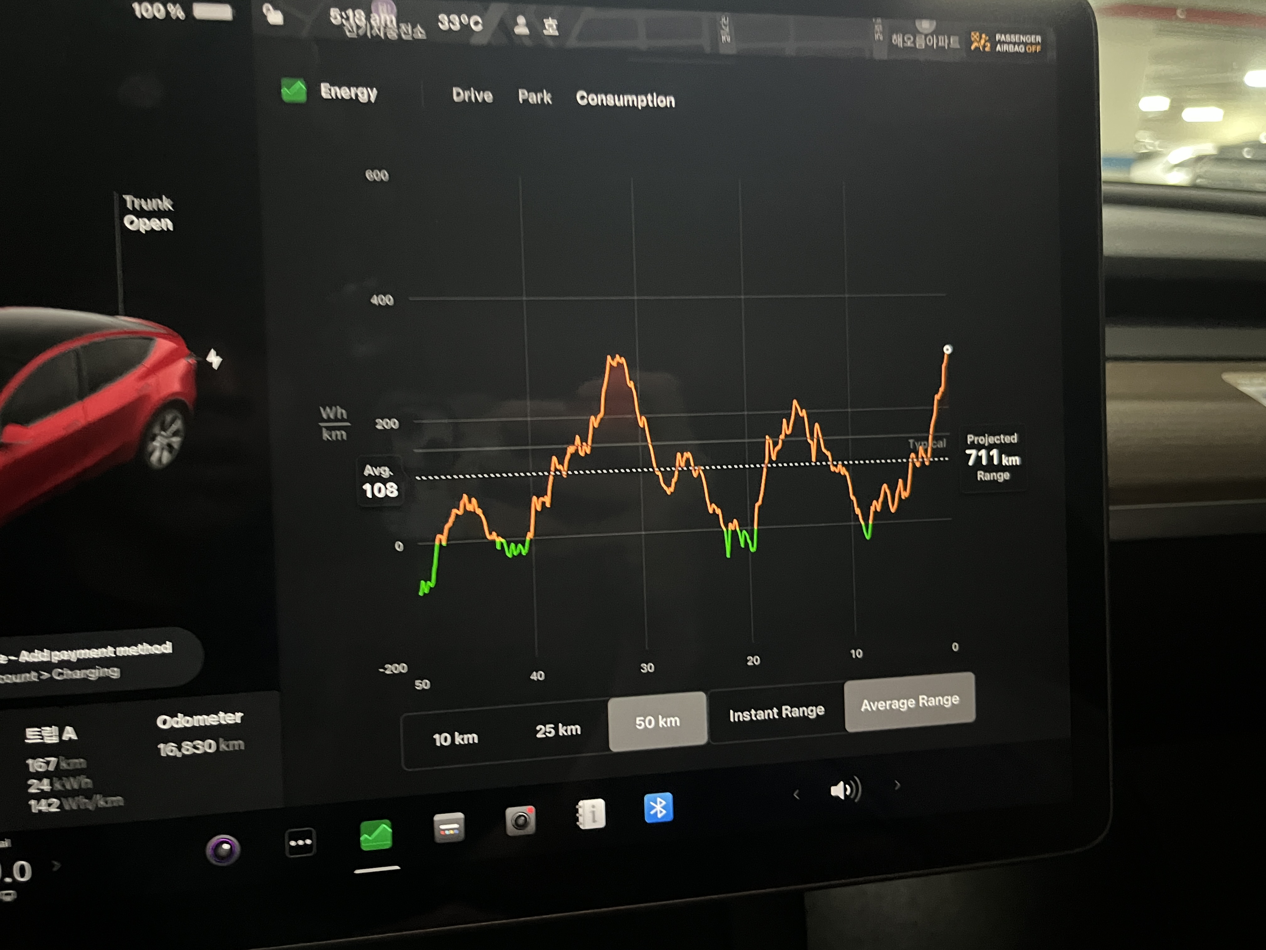 50km 평균 전비 108Wh/km? 9.25km/kWh?