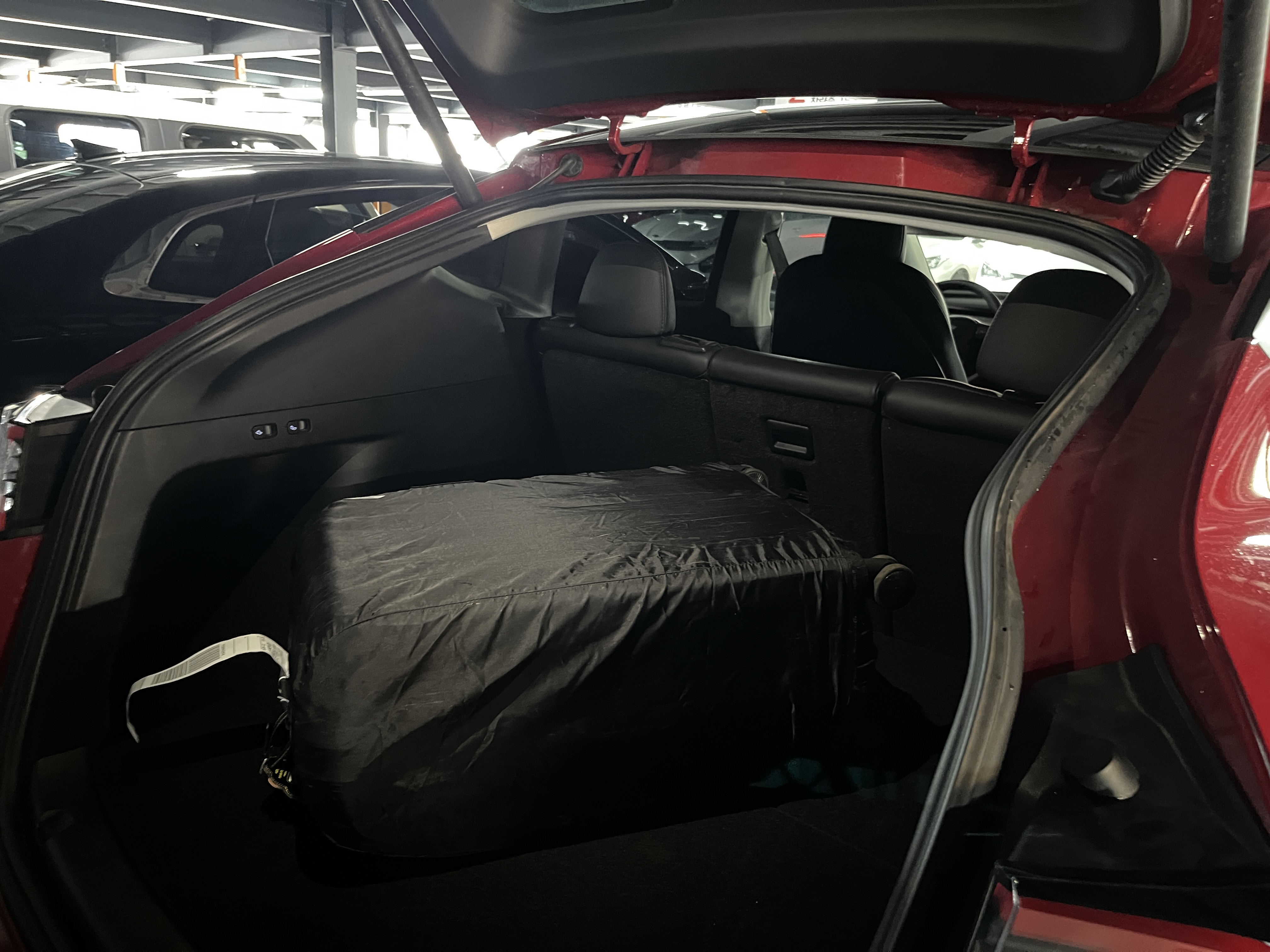 2열 접으면 트렁크 + 실내 공간이 저렇게 나와요. 캐리어 기내용 아니고요, 28인치 일겁니다.