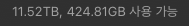 아무튼, 12TB의 남은 용량이 1TB 안쪽으로 줄어들었습니다.