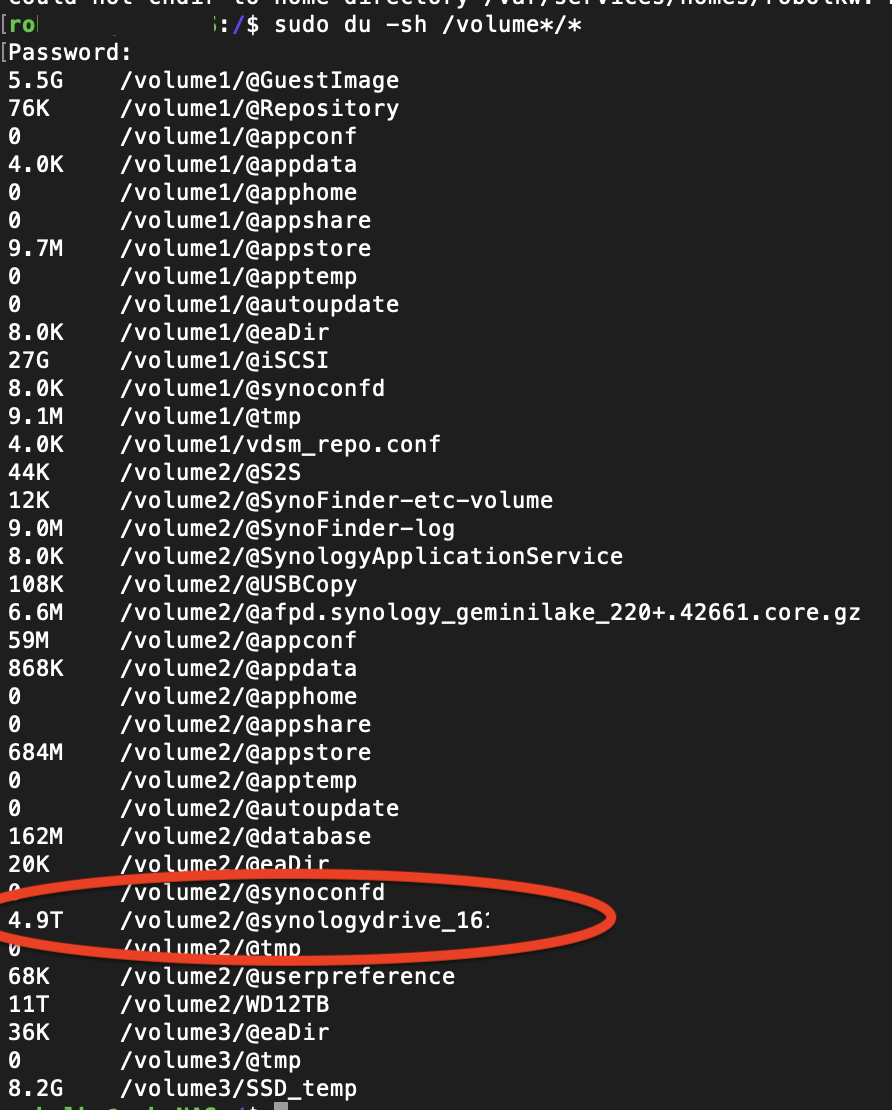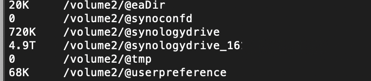 문제의 /volume2/@synologydrive_16...디렉토리 아래에는 @sync 가 있고, 그 아래에는 delta node_delta repo 라는 디렉토리들이 있네요.