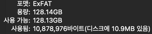 맥북에서 exFAT 포맷 후 용량 확인