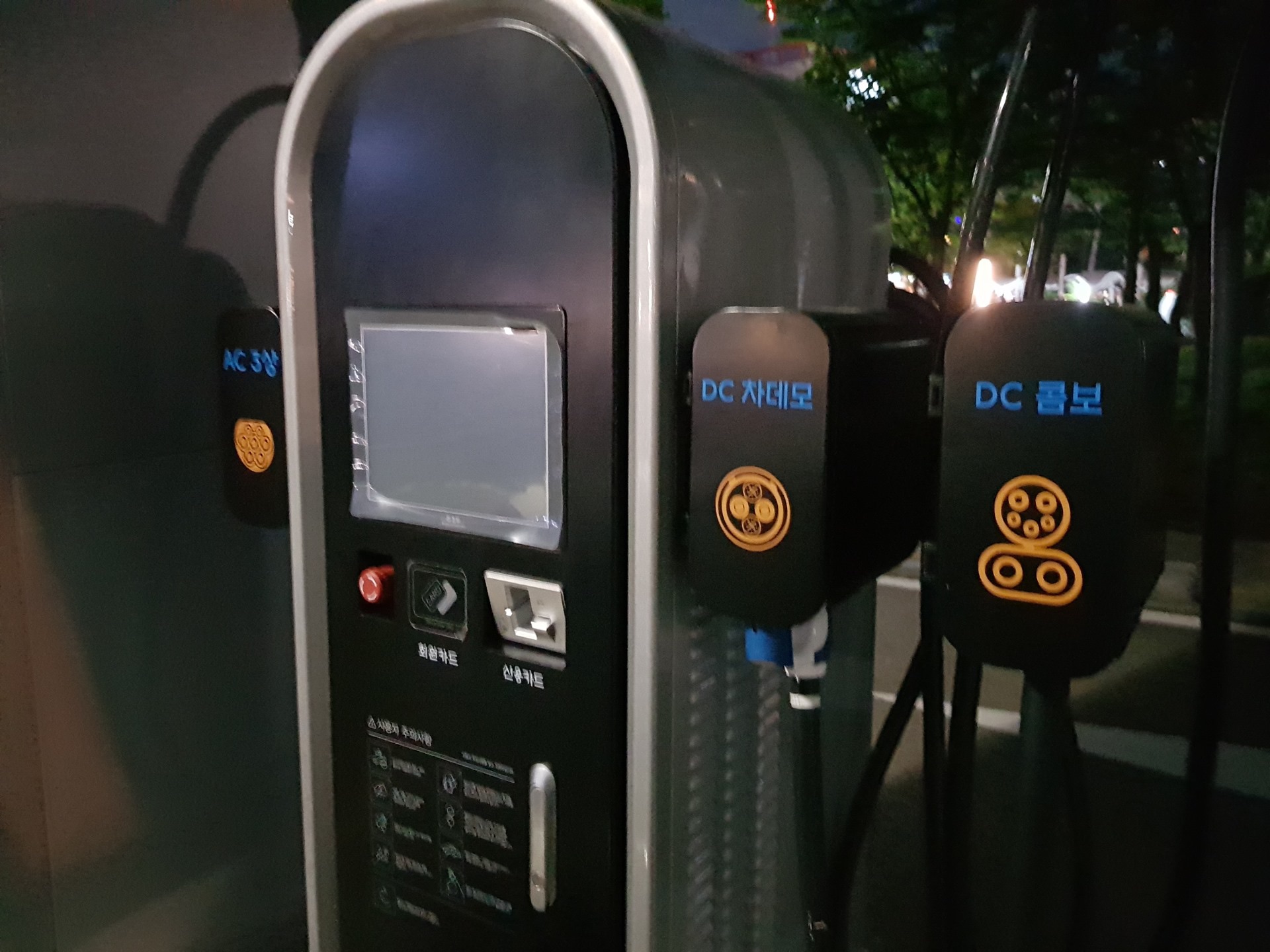DC 차데모 (CHAdeMO), AC 3상 이런 것들은 충전기에 차종명이 적혀있기도 했습니다.(잘 모름)