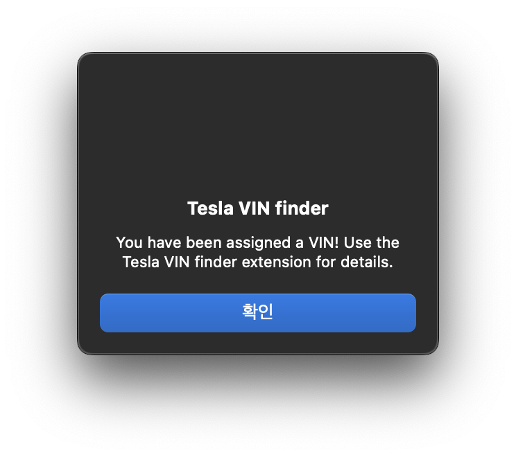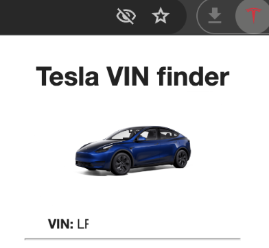 크롬에서 Tesla VIN Finder 라는 확장 프로그램을 설치하고, 테슬라 홈페이지에서 내 차 정보 페이지에 들어가면,