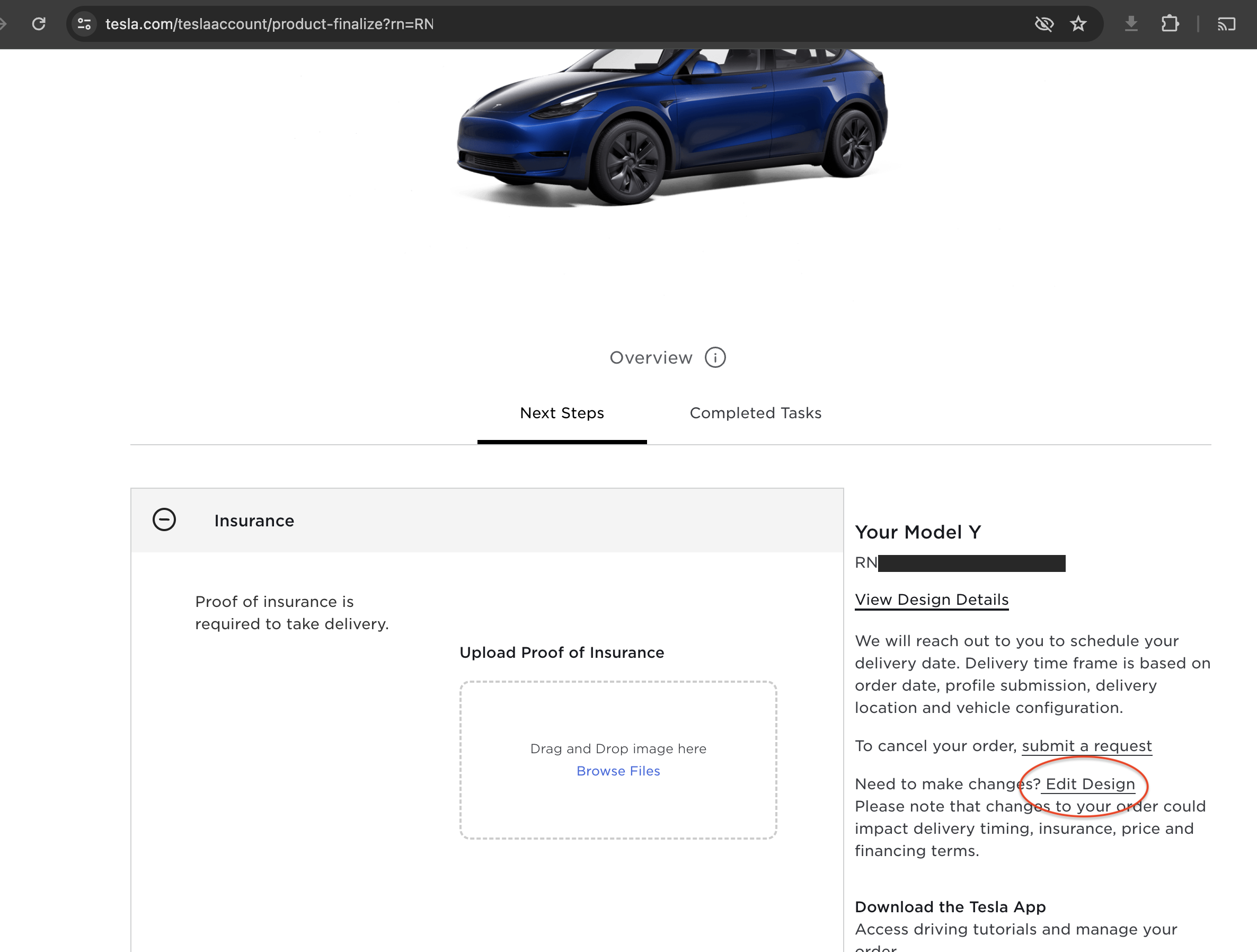 근데 같은 모델 Y RWD 주문건인데, 화이트 색상은 디자인 편집 버튼이 남아있고, 블루는 디자인 편집이 사라졌다는 내용을 봅니다.