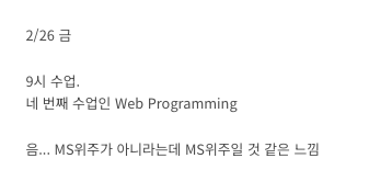 시작은 기숙사 사진으로. 2/22 월 첫 수업. Mobile Apps and Cloud.근데 난리도 아니었음. 정신없고. 나중에 사람들 다 나가고. 알고보니 같은 학년 수업 하나가 겹쳐서 그랬다고. 그래서 이 수업 시간을