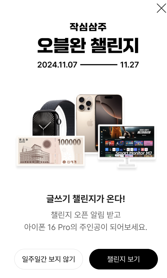 전 네이버 블로그는 진작에 내려놔서 챌린지를 따로 하진 않았는데...