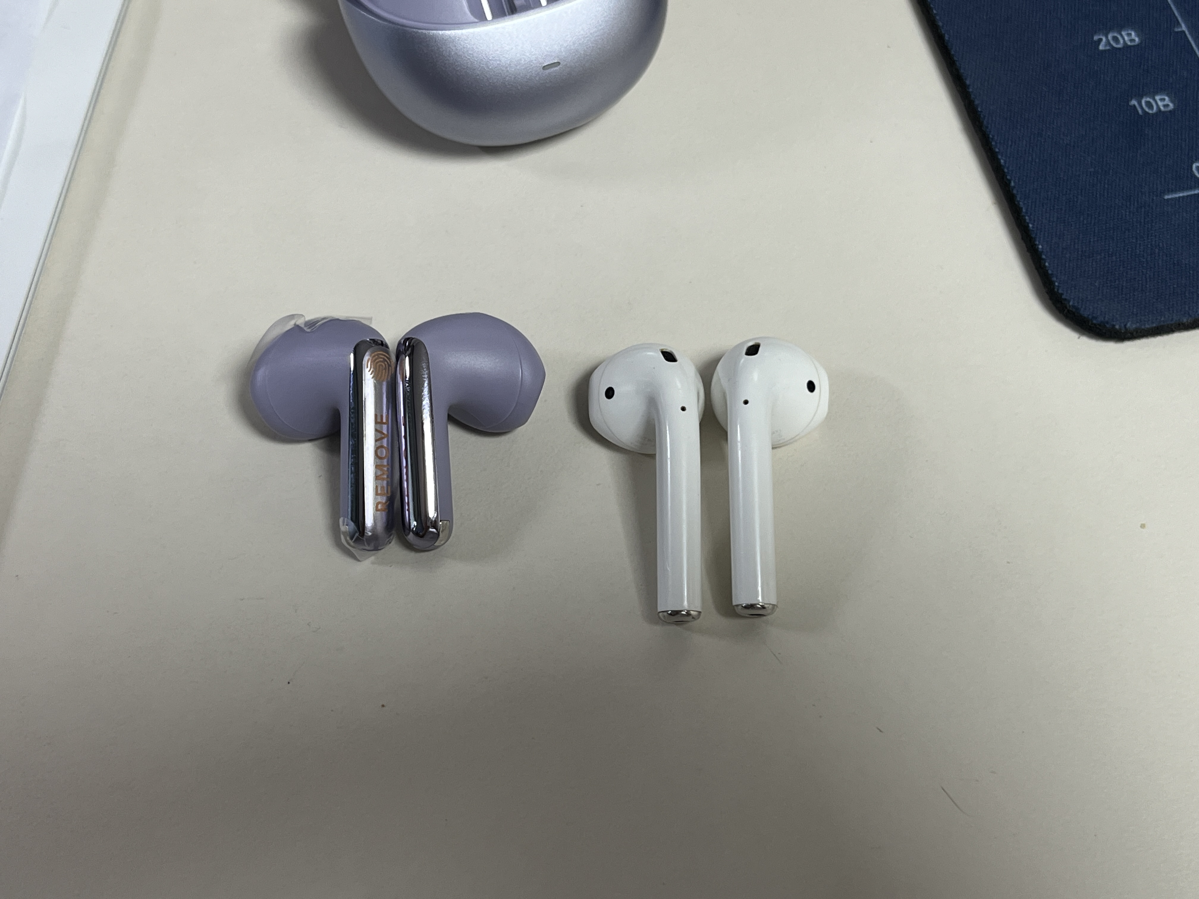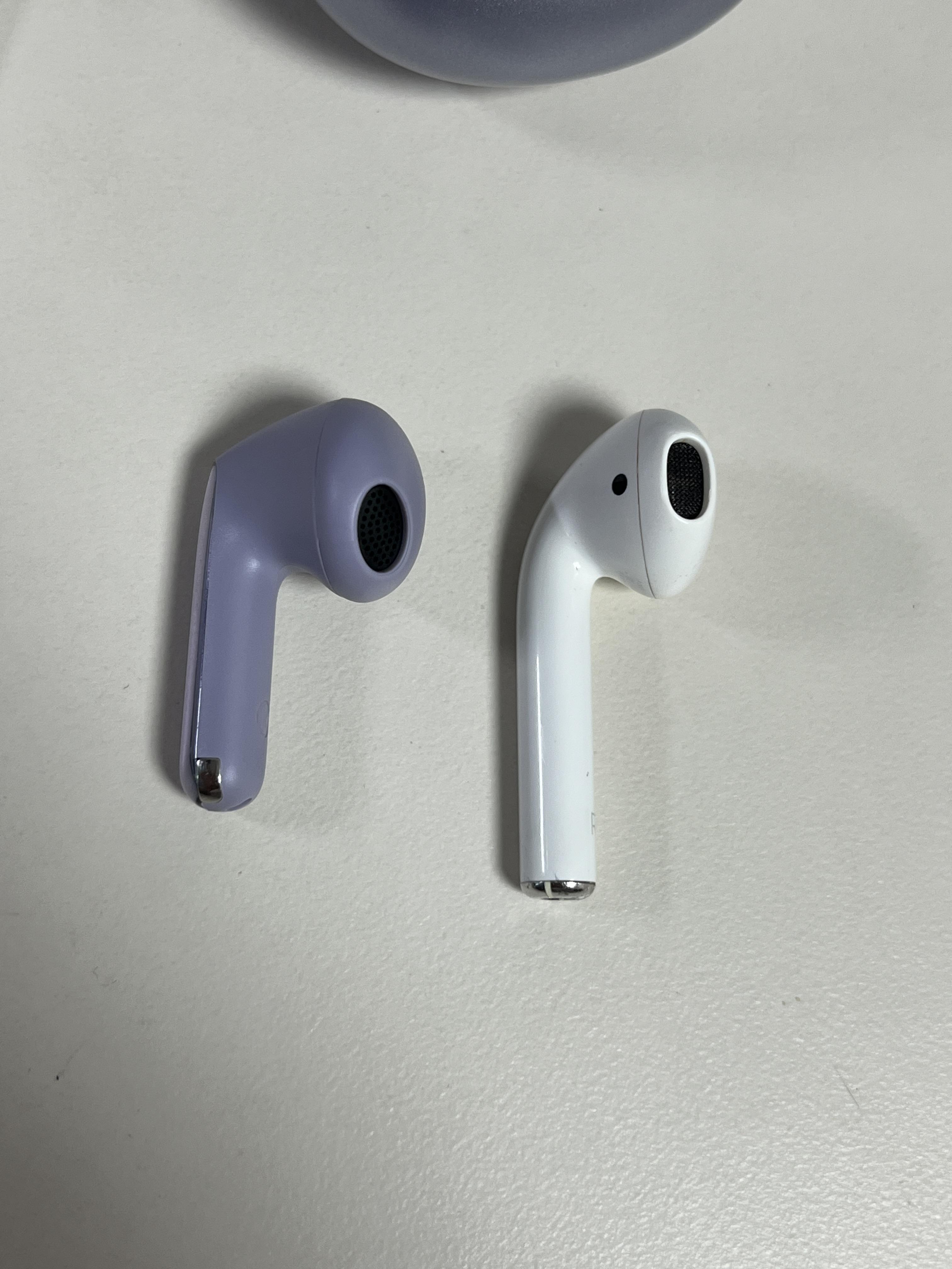 길이는 짧고 귓구멍쪽은 조금 큰데, 실제 착용하는 각도가 달라서 착용감은 비슷합니다.