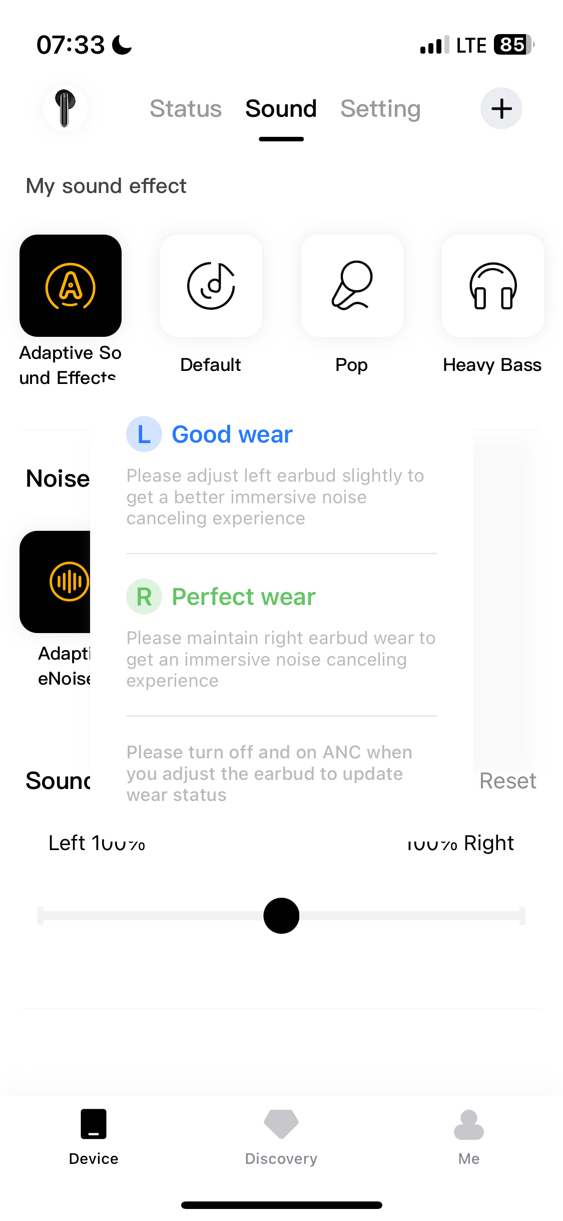 Good Wear면 좀 더 조정해라. (근데 조정하면 노캔 방향 틀어져서 노캔 기능 다시 껐다 켜는게 좋습니다)