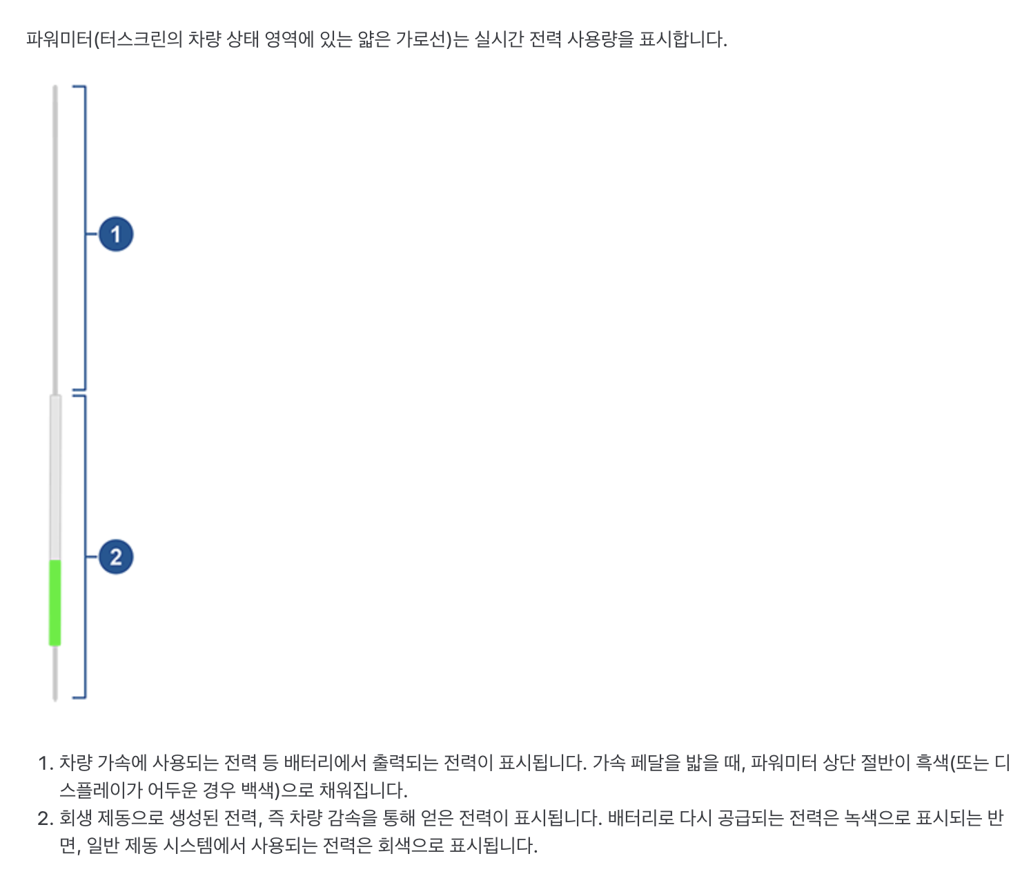 일반적인 상온이었으면 아래 점선이 없고 실선이고, 가속 페달에서 발을 확 떼면 아래로 쭉 초록색 바가 내려오며