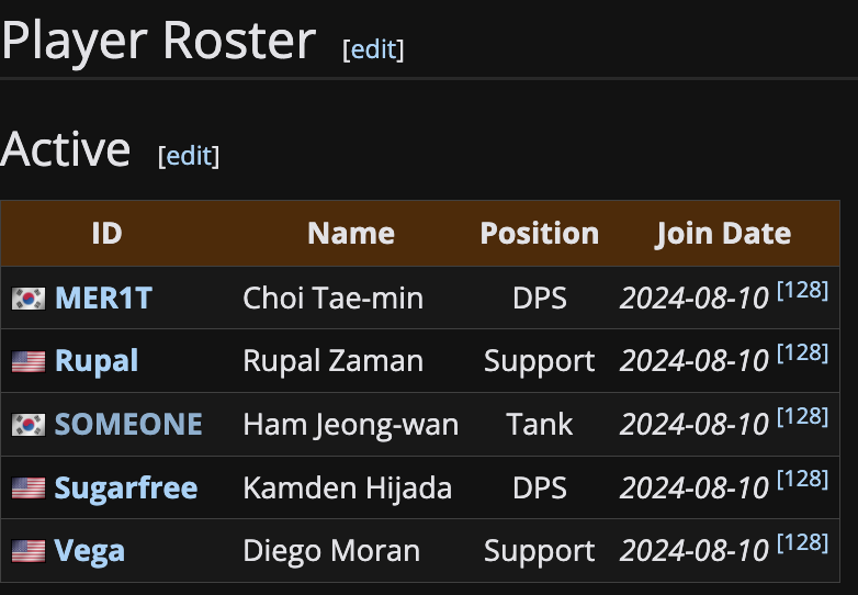 8팀 선수 로스터 설명은 Liquipedia를 가져와봅니다.