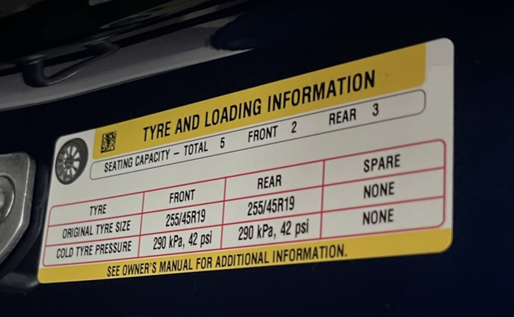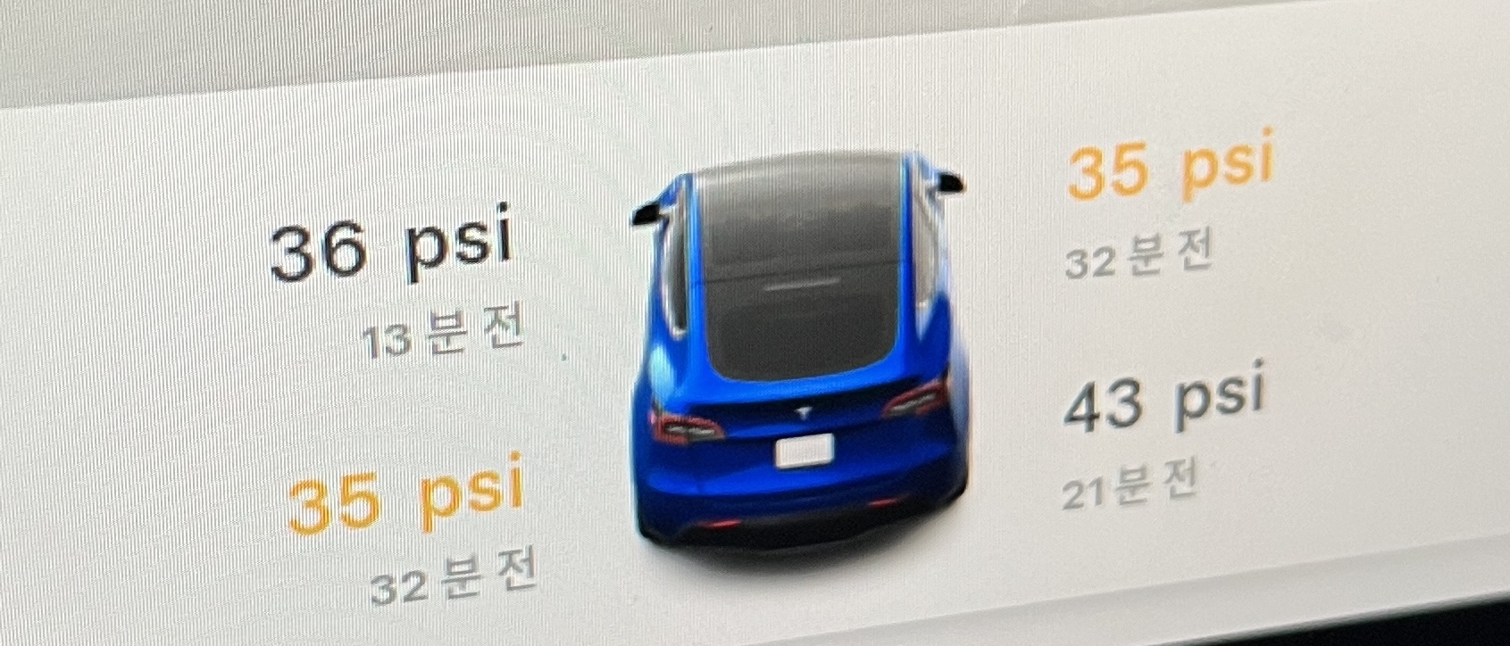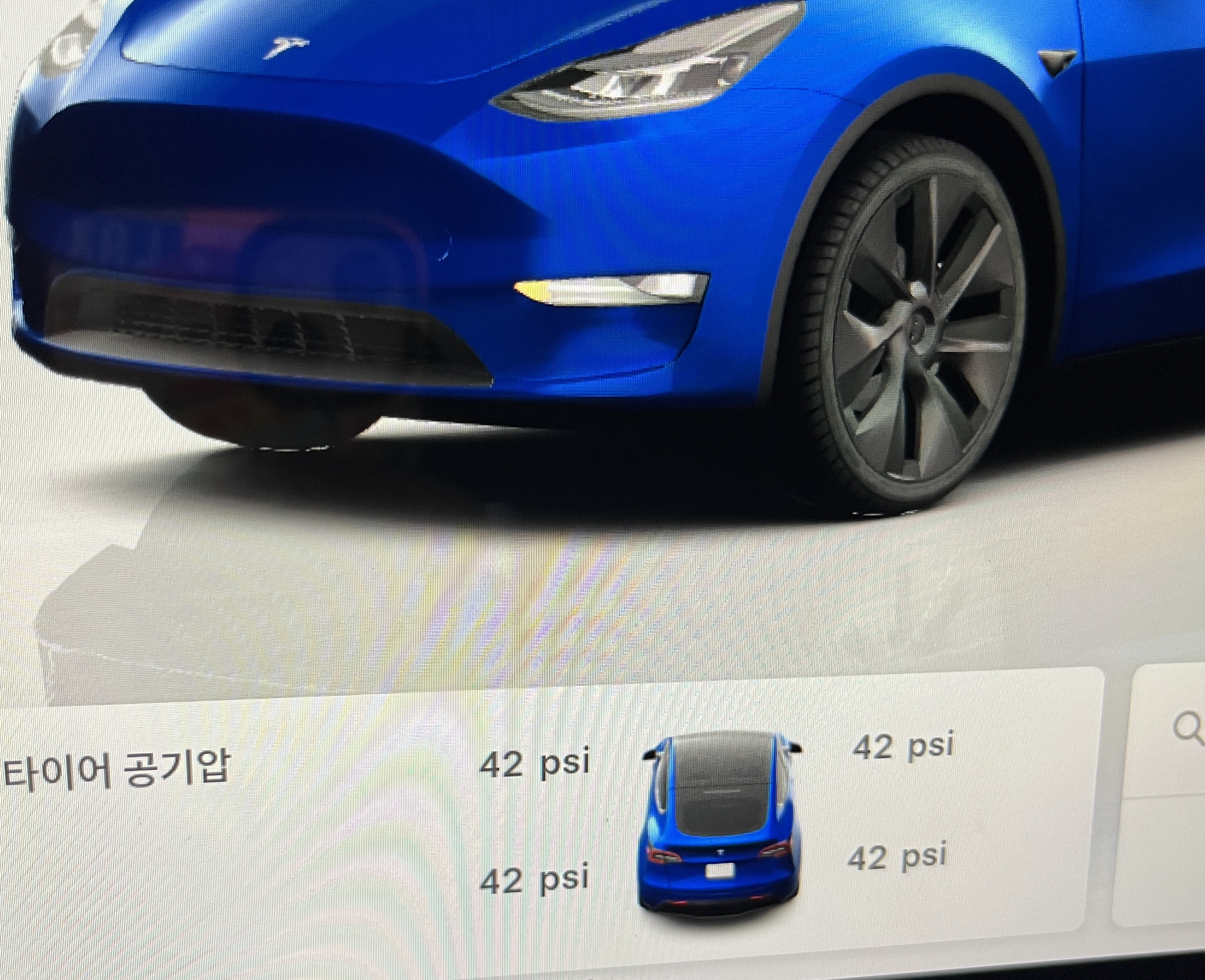 테슬라 모델 Y (RWD)의 스펙상 타이어 정격 공기압은 42 psi (저온 기준)이고 출고시 당연히 42에 맞춰서 나왔습니다.