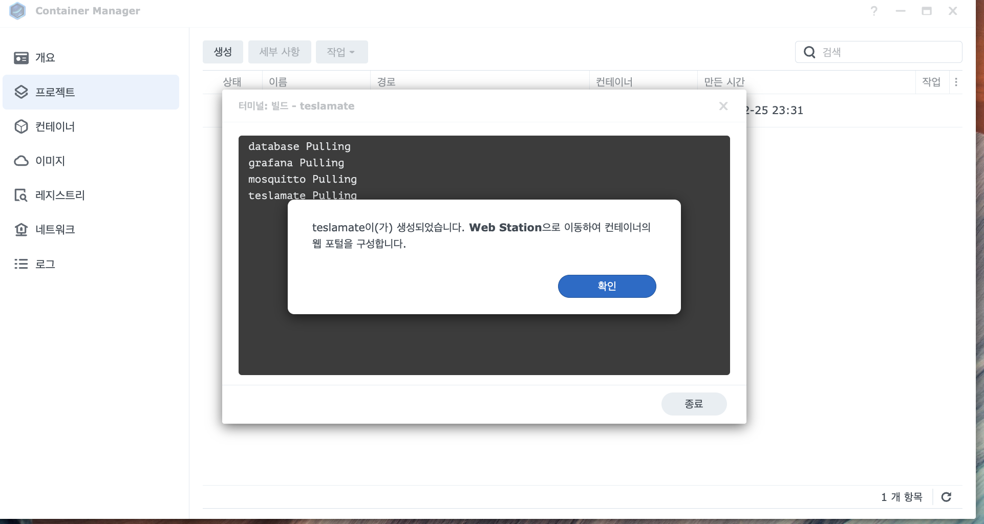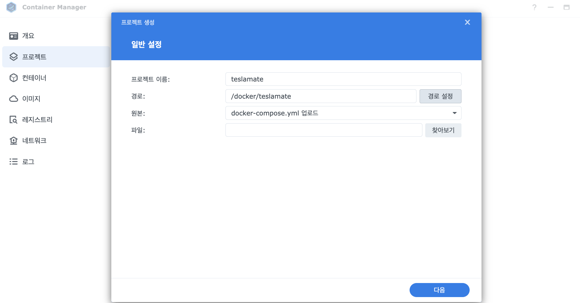 3. Container Manager - 프로젝트 - 생성