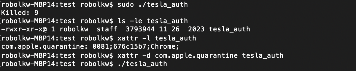 그 후 ./tesla_auth 해주면 실행이 됩니다.