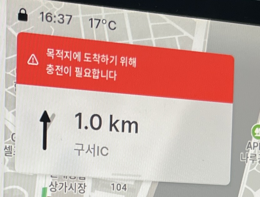목적지에 도착하기 위해 충전이 필요하다고 뜨지만,