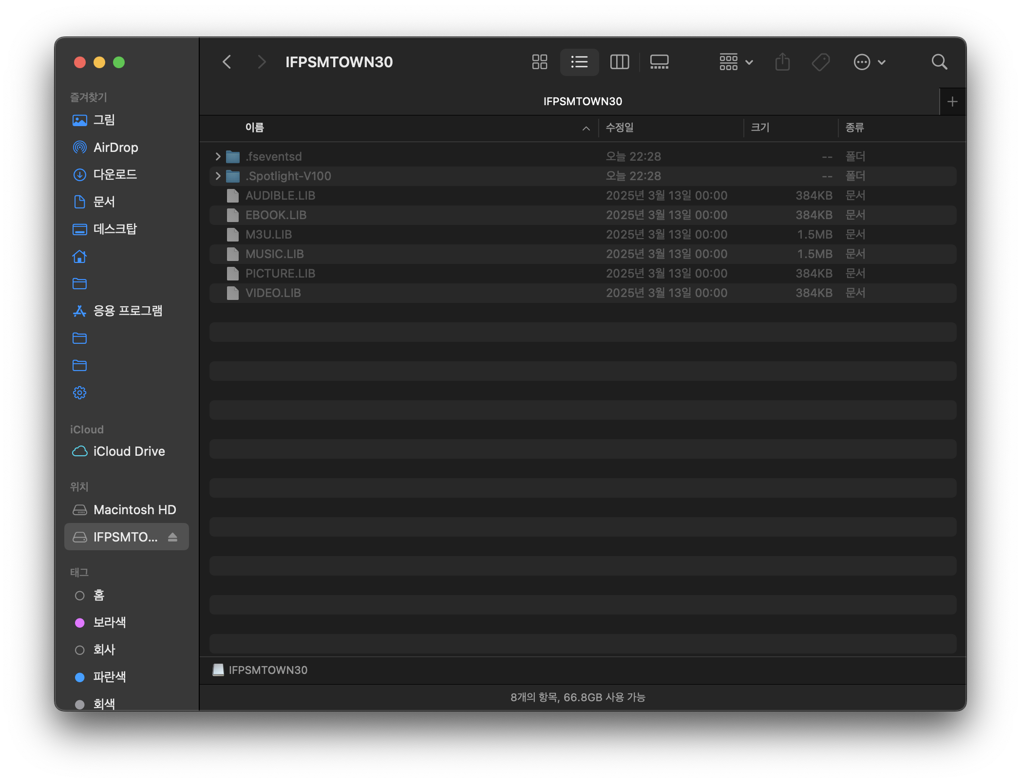 그리고 라이브러리 파일들이 있는데 AUDIBLE, EBOOK, M3U, MUSIC, PICTURE, VIDEO...?