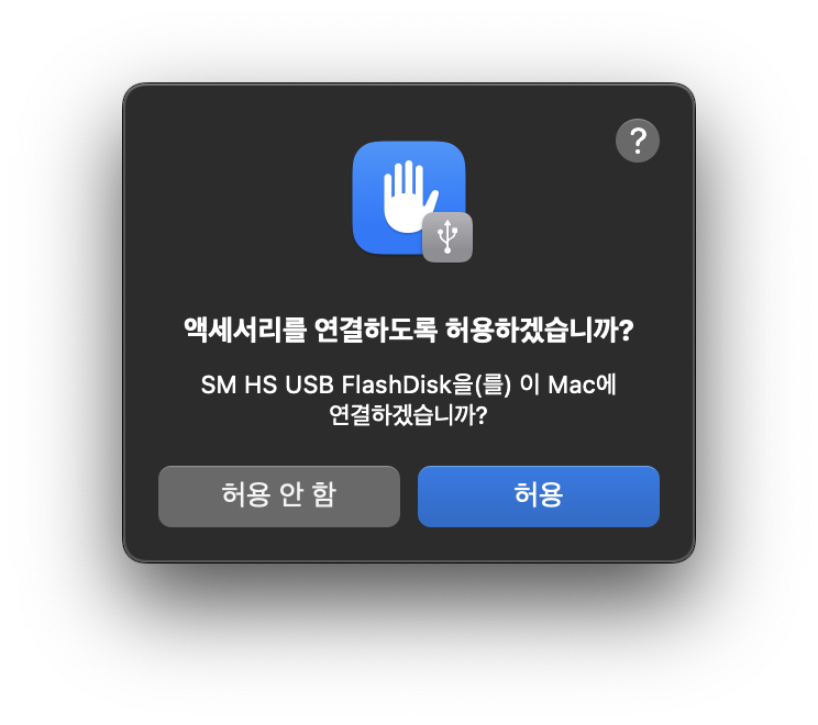 맥에는 이렇게 악세사리명이 뜨며 연결 허용 여부를 묻습니다.