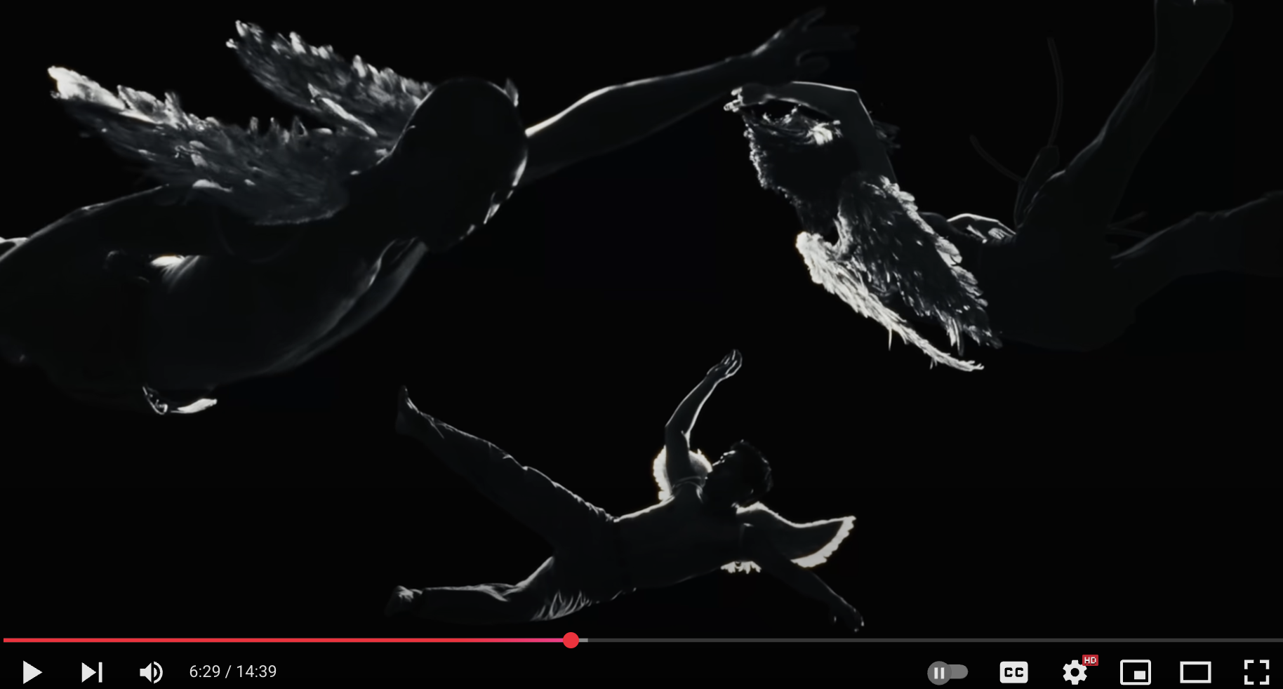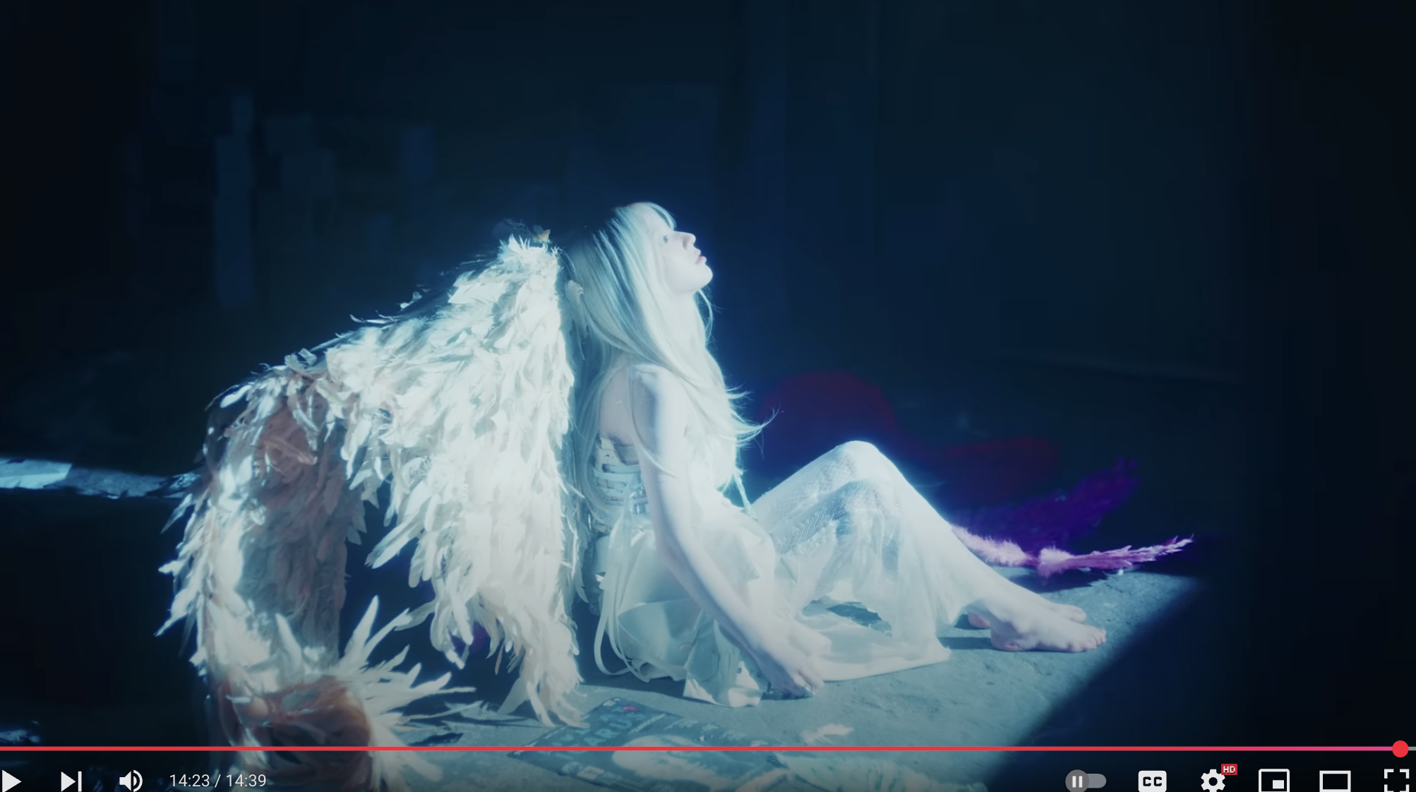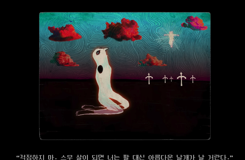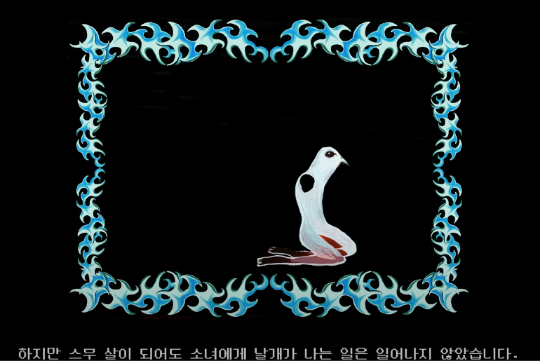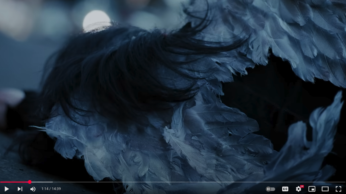 큰 날개를 달고 있는 희진(혹은 희진이 상징하는 다른 캐릭터인지는 모르겠지만)이 어딘가를 응시하며 장장 14분 39초에 달하는 뮤비가 열린 결말로 끝이 납니다...