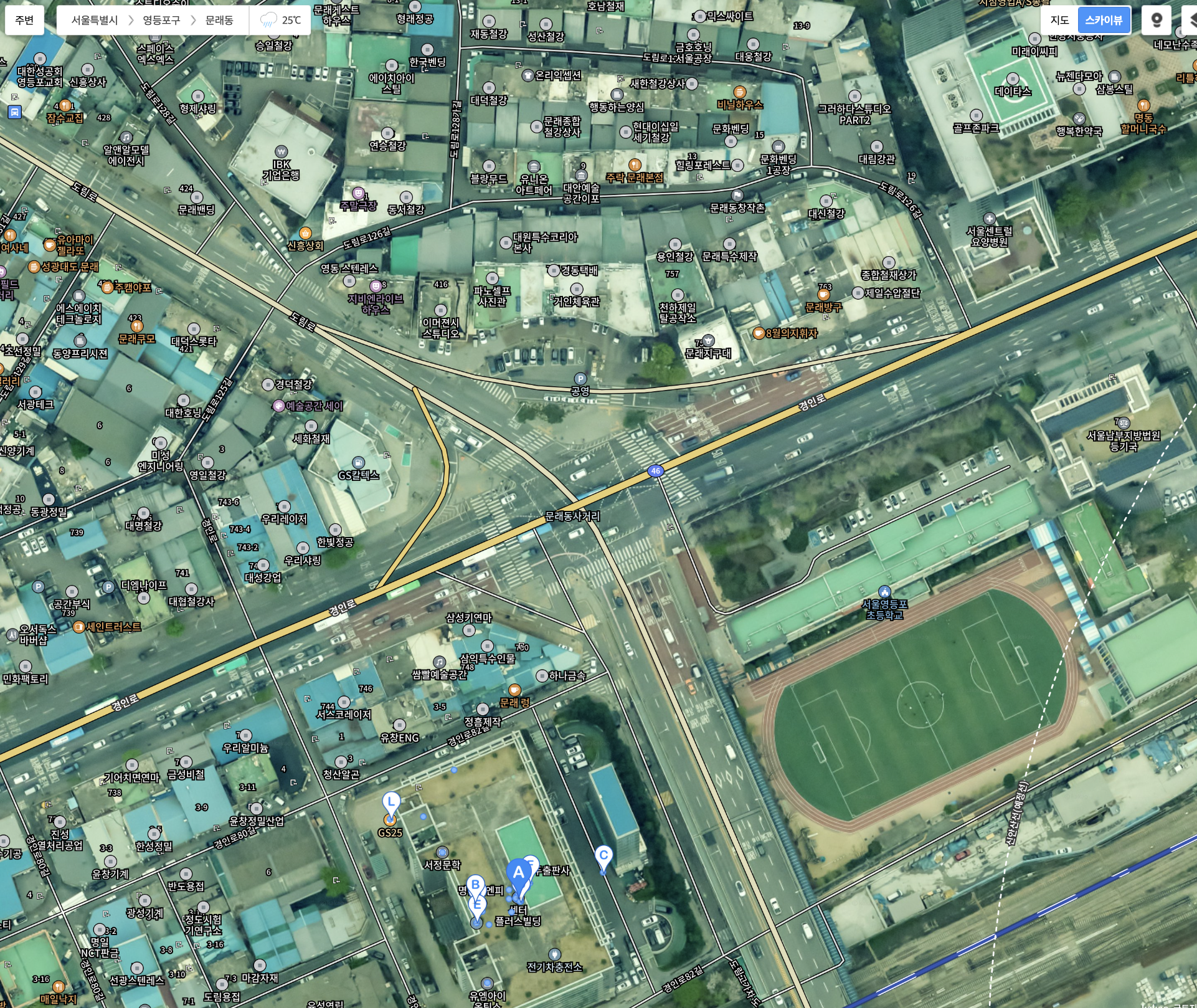 문래동 근처 건물 옥상에서 찍었다는 사실을 알 수 있군요.