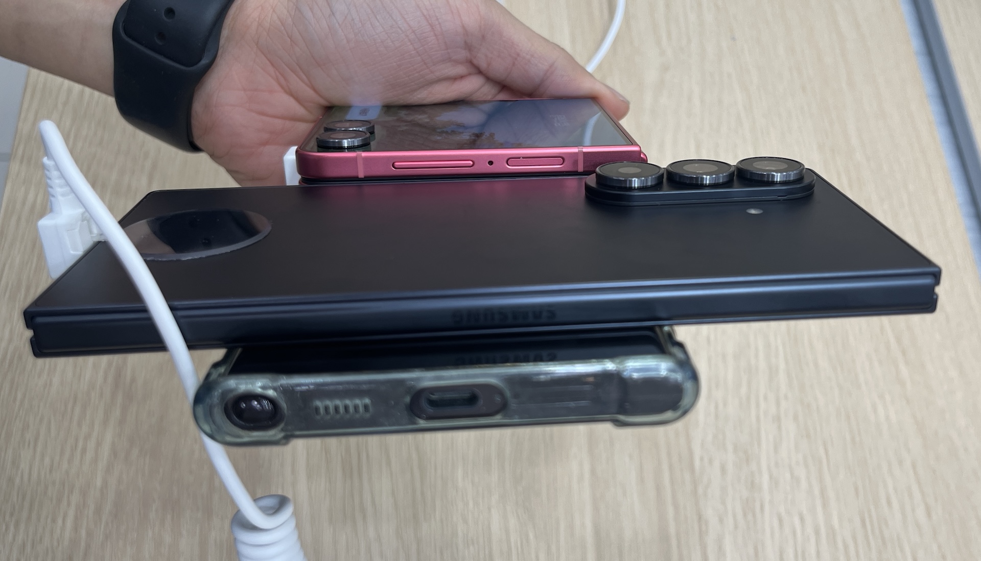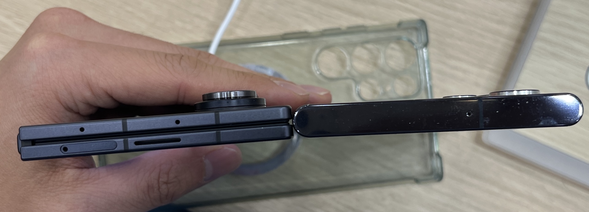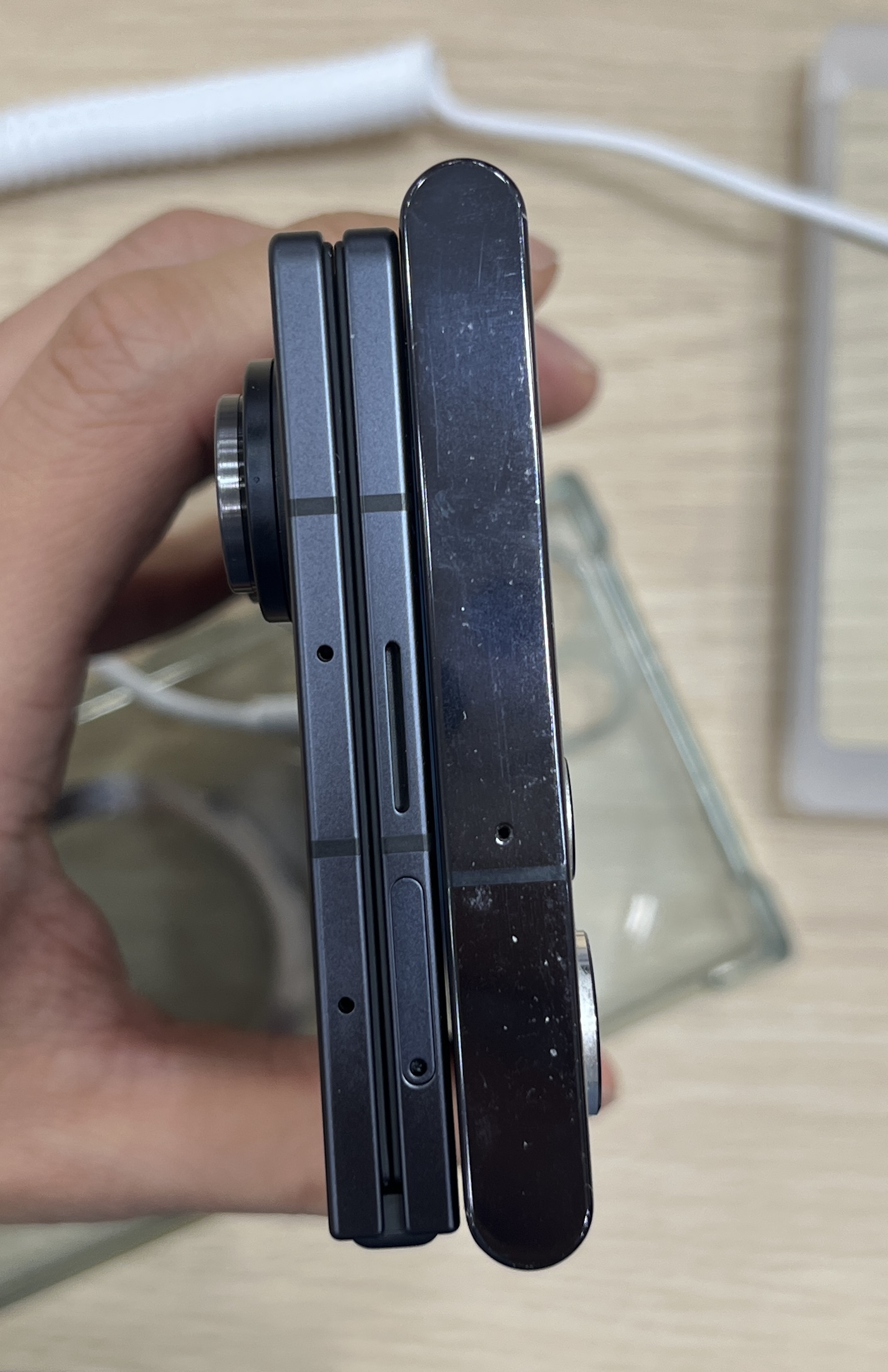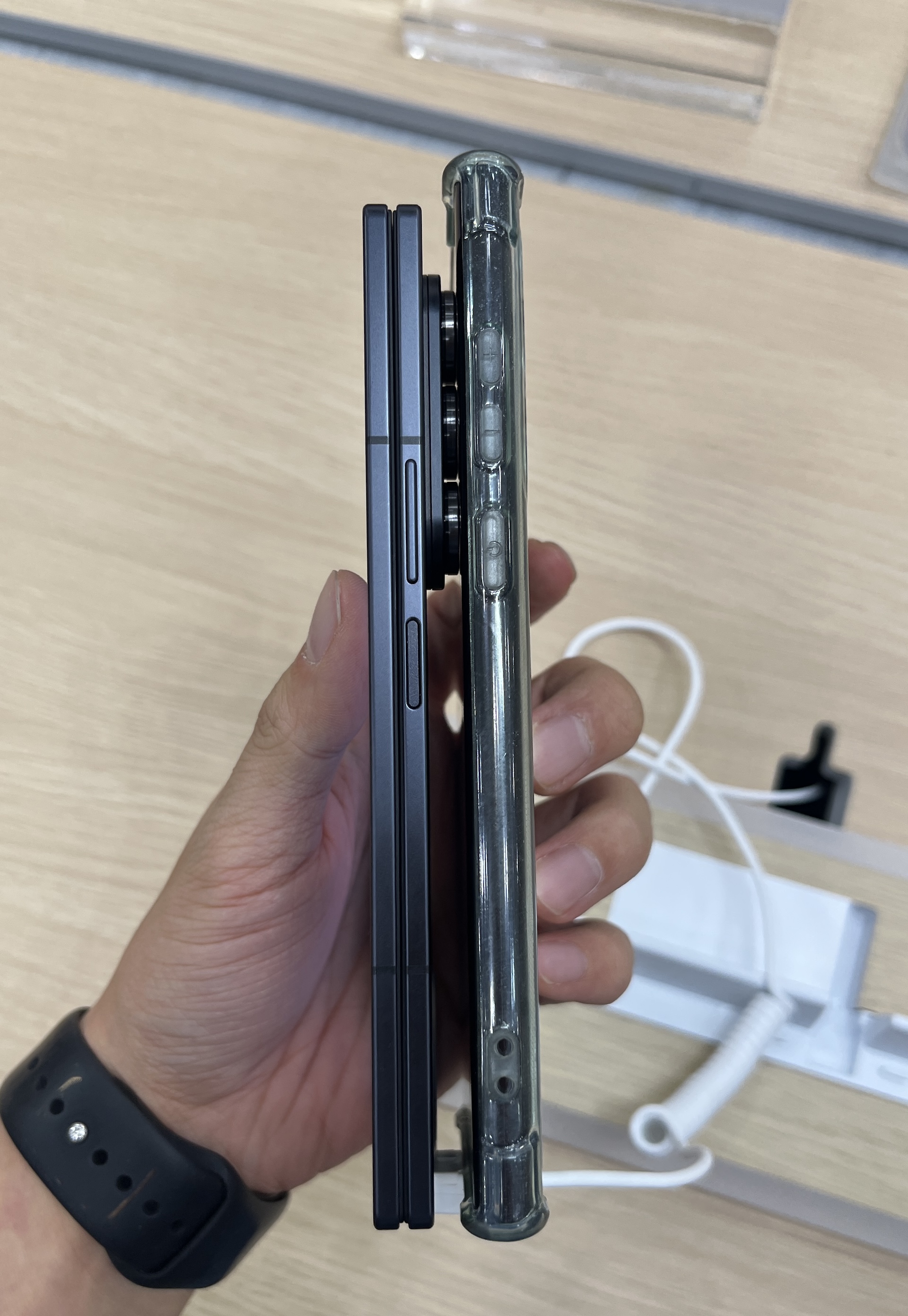 촬영 각도 때문에 약간 과장되어 보이는건 맞지만, 플립7 펼친거랑 폴드7 접은거랑 몇 mm 차이 안 날 것 같아요.