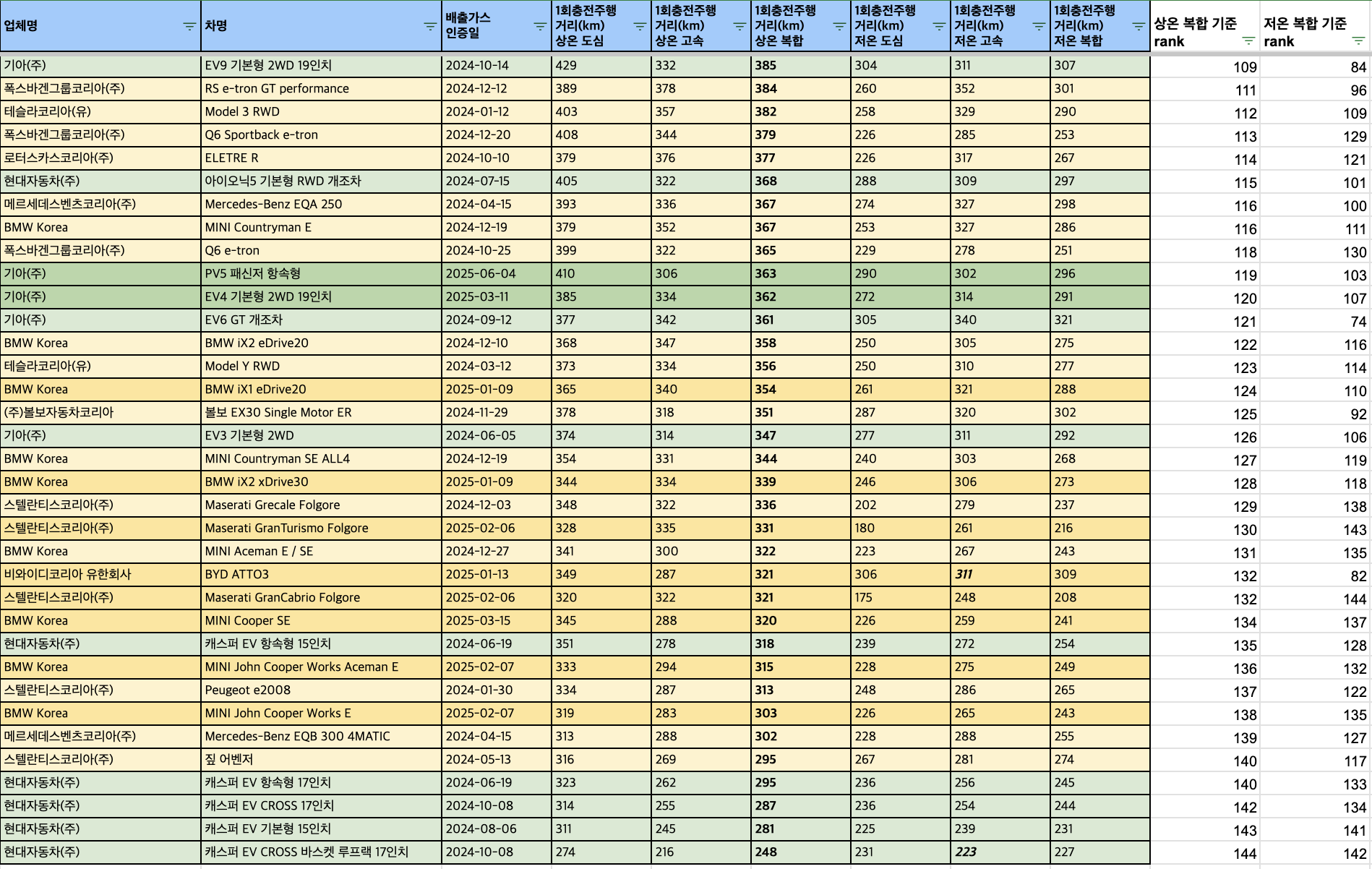 | BMW Korea | MINI Cooper SE | 2025-03-15 | 345 | 288 | 320 | 226 | 259 | 241 | 134 | 137 | 3 |