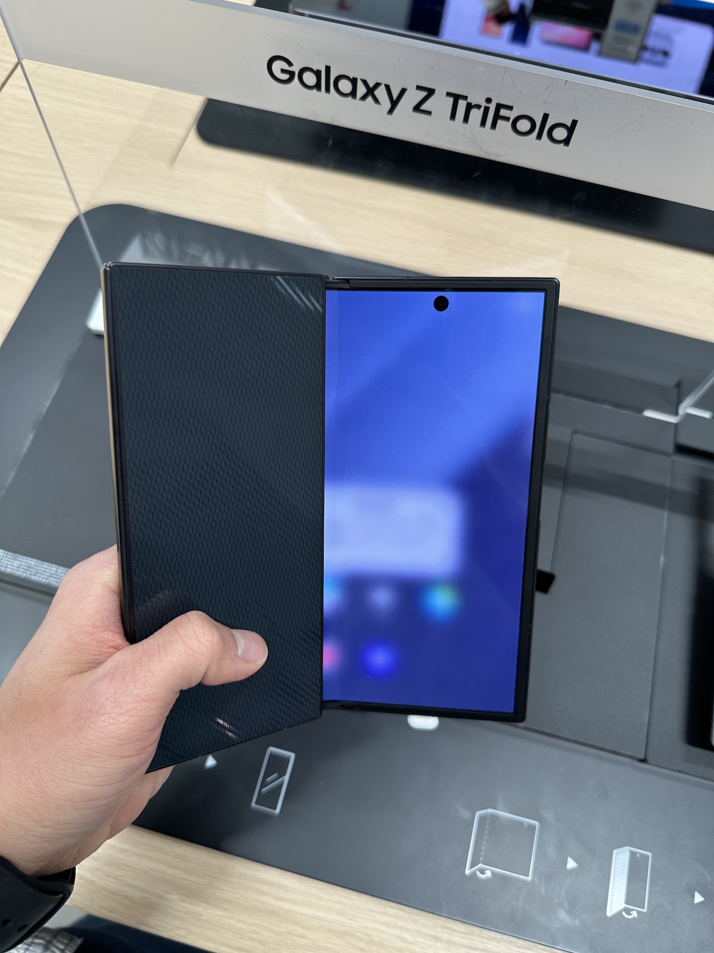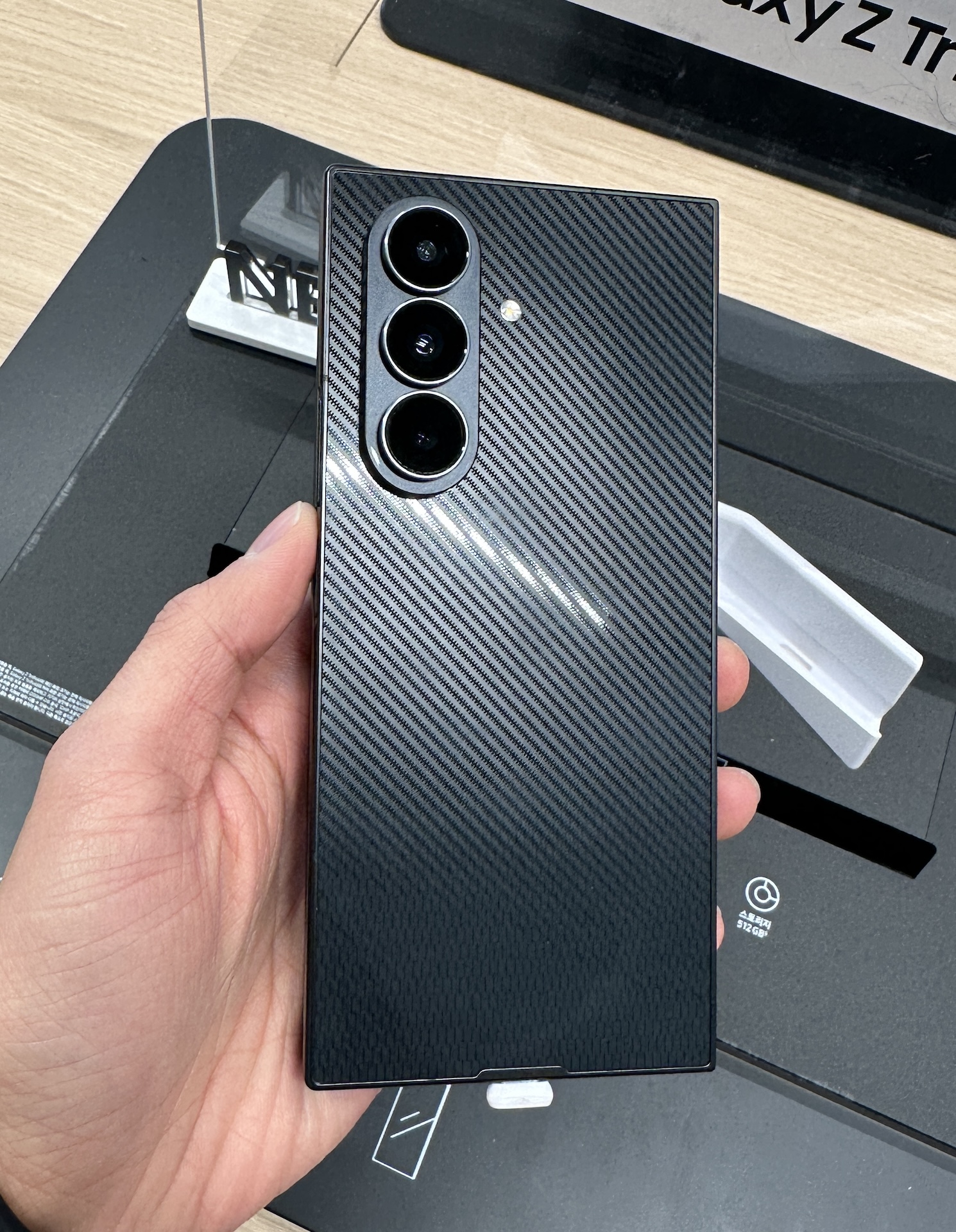 과거 갤럭시 폴드 첫 제품은 매장에 직원이 상주하고 직접 폰을 내어줘서 잠깐 보고 돌려주는 방식이었는데요,