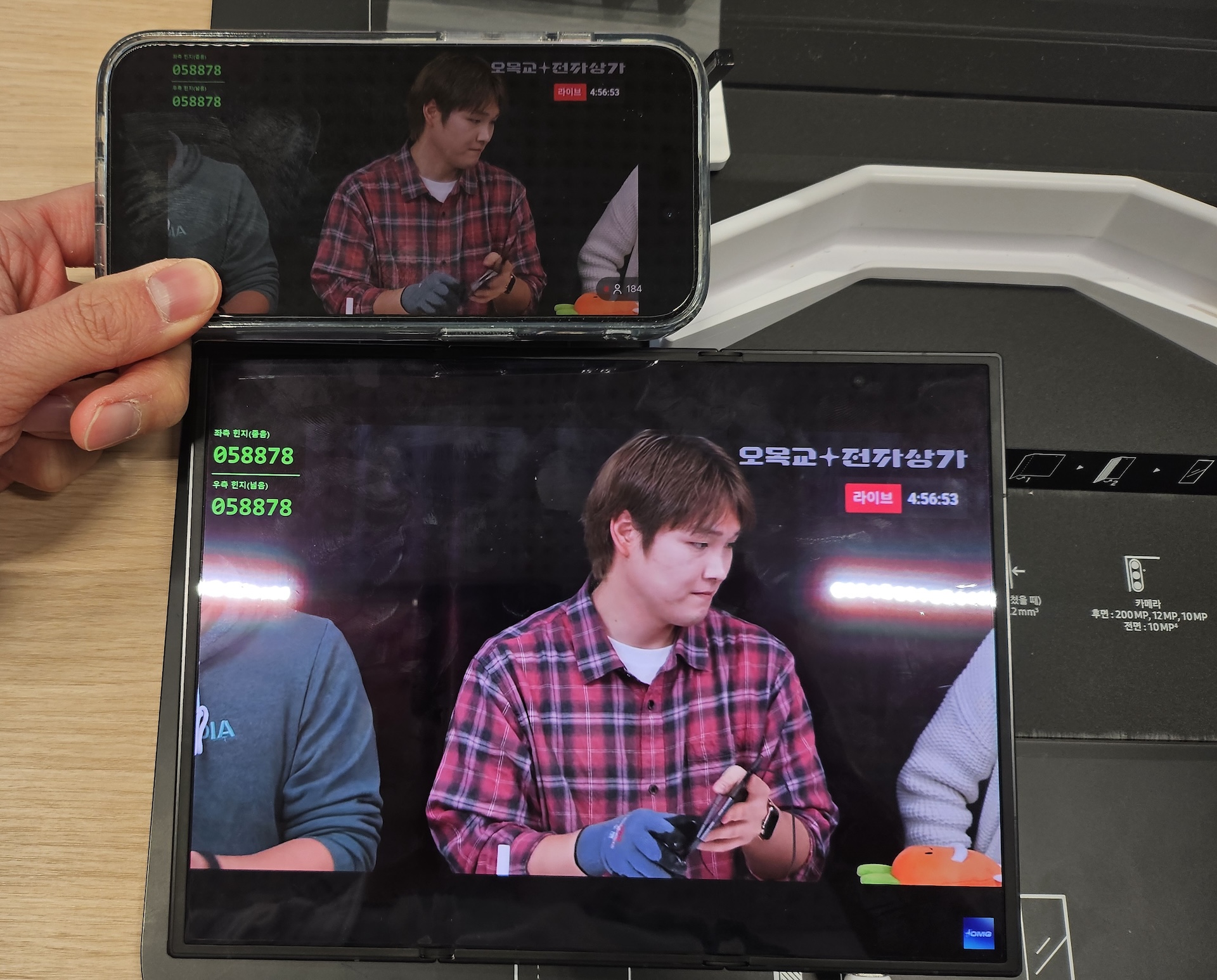 참고로 위 영상은 유튜브 오목교 전자상가에서 20만 번 접기 테스트 하는 라이브 화면입니다.