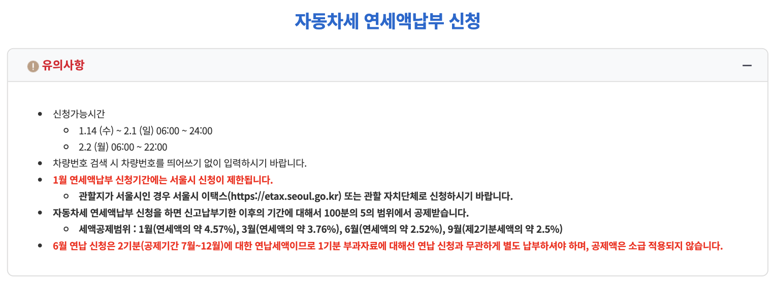 2026년 자동차세 연납 신청은 내일, 1월 14일 (수) 부터군요.