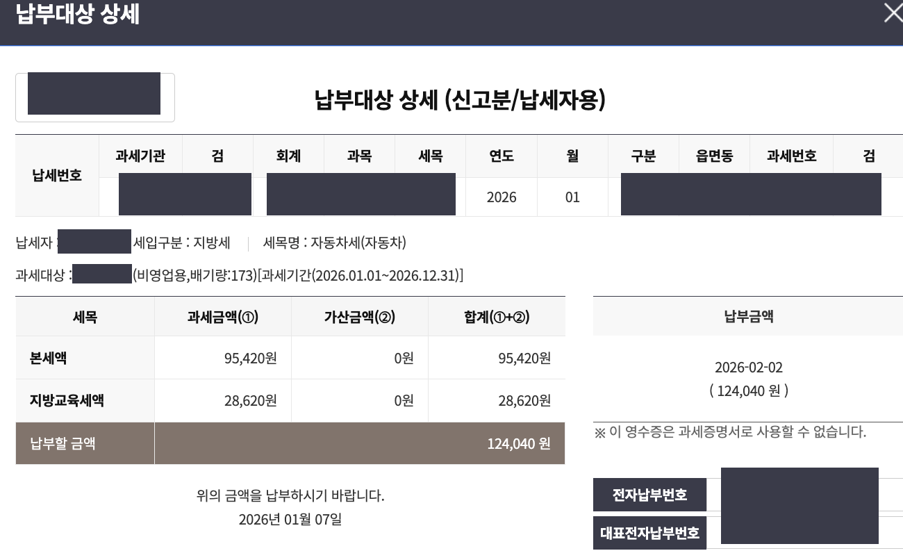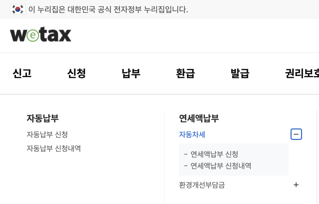 참고로 자동차세는 지방세이며, 전자정부 누리집인 위택스 홈페이지에서 조회/납부가 가능합니다.