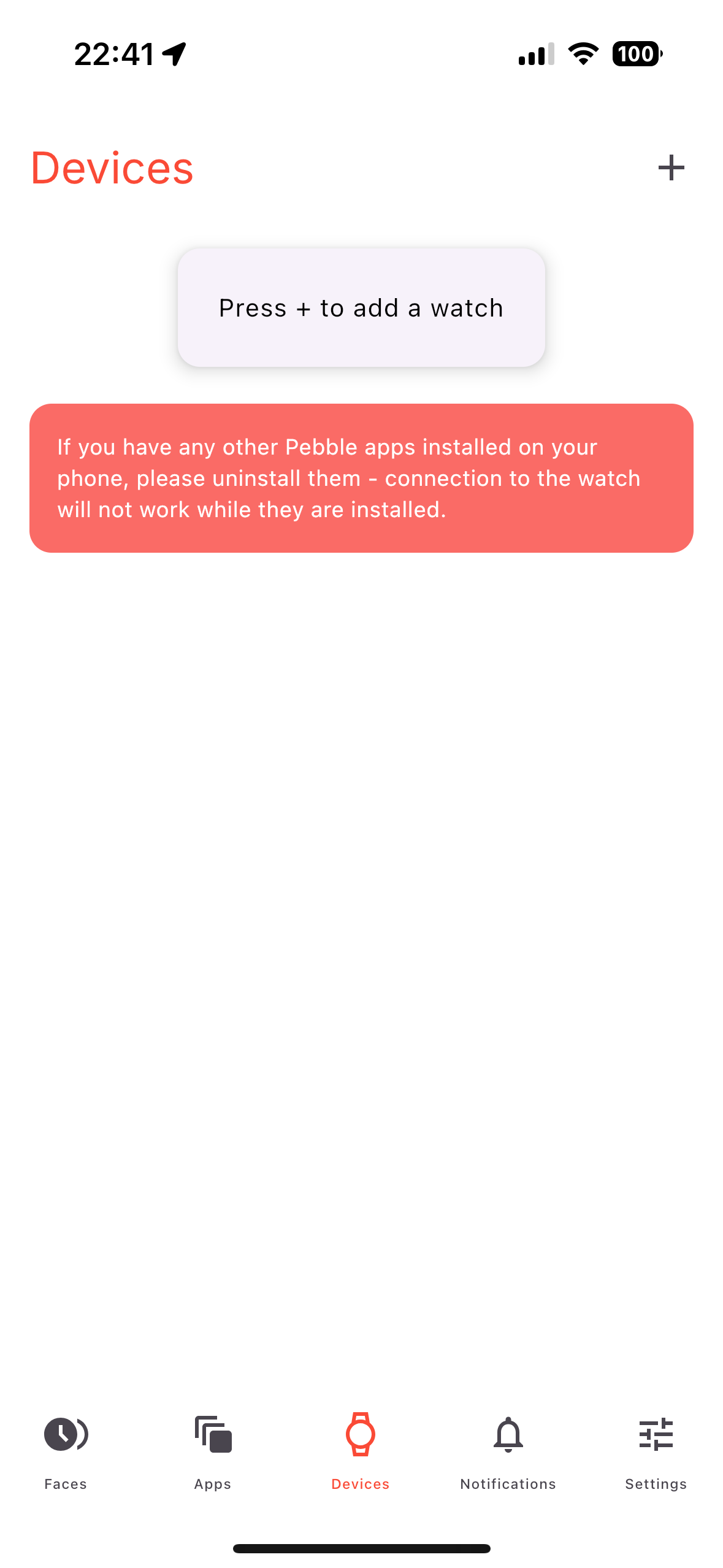 "다른 페블 앱(들)이 폰에 설치되어 있으면, 지우세요. 다른 페블 앱들이 설치가 되어 있다면 연결이 되지 않습니다"