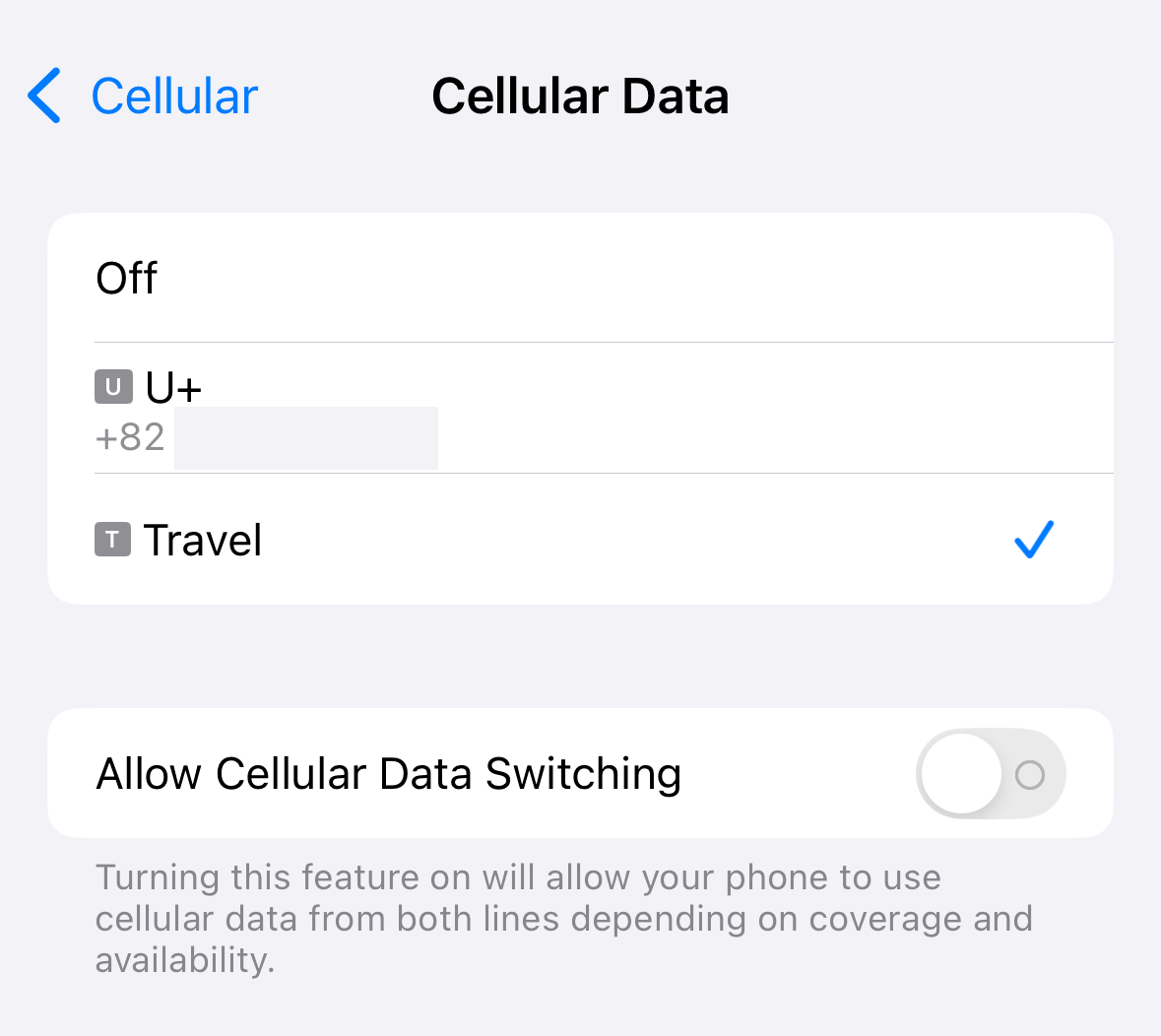 한국 통신사에서 데이터 로밍을 하거나 / 해외용으로 eSIM 데이터만 구매해서 사용하는 경우