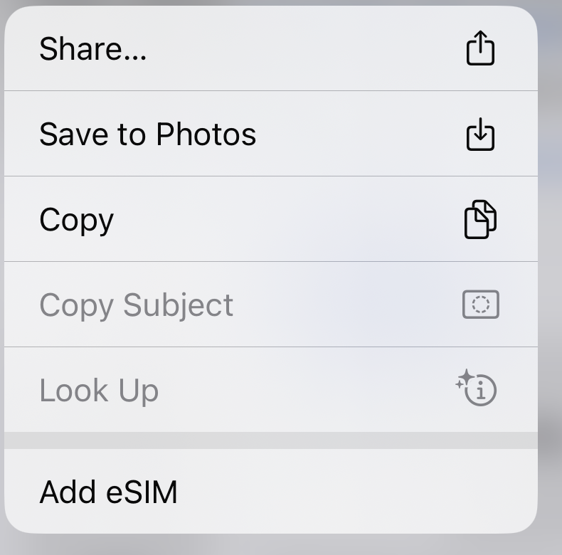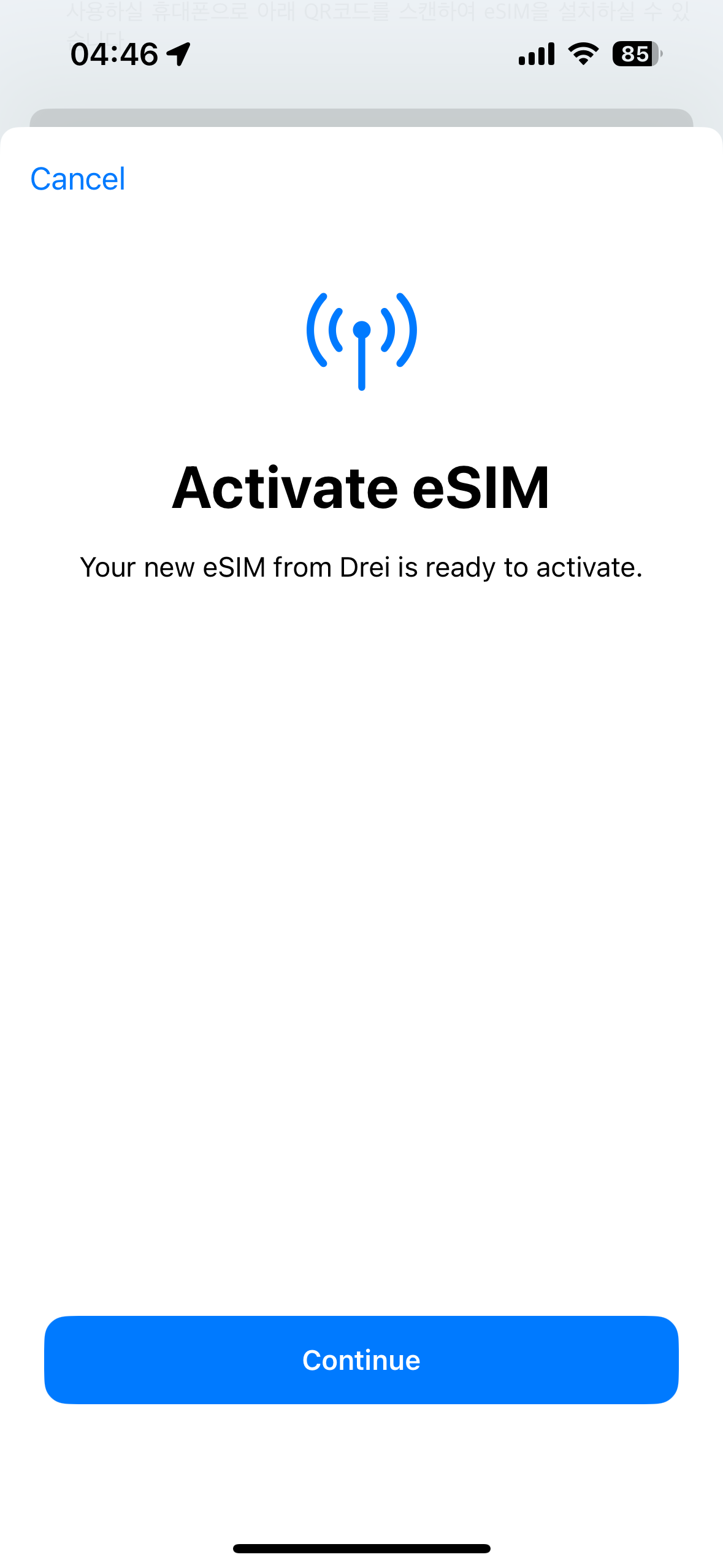 아이폰은 바로 Add eSIM 버튼이 뜹니다.